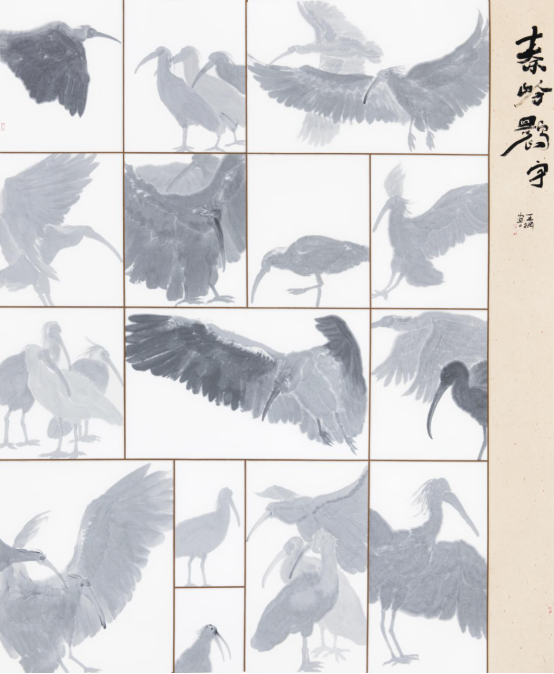 朱鹮作为国家一级保护动物,素有“东方宝石”之称,是“汉中四宝”之首,同时也是汉中市的“市鸟”和陕西省的“省鸟”。王网的作品以新水墨技法描绘朱鹮,生动展现了汉江流域的生态之美,既彰显了深厚的传统笔墨功底,又体现了鲜明的地域文化特色。