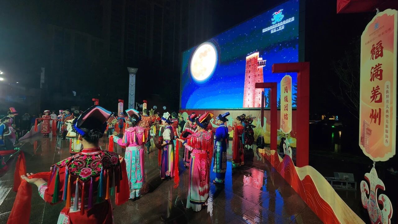 10月6日中秋之夜,“月满汉江·情系羌州”羌族拜月大典暨羌族服饰秀在宁强县中心广场华彩上演。秋雨微凉,但现场热情不减。华美羌服、庄严古礼与欢快篝火交织,为市民与游客带来了一场独具风情的文化盛宴,让传统佳节浸润在浓厚的羌族文化氛围之中。