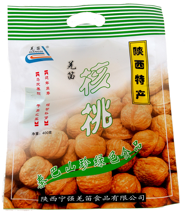 宁强县五丁关以北地区盛产核桃,具有悠久的核桃栽培历史,盛产的薄壳核桃,果大、壳薄、果面光洁、缝合线浅、出仁率高,易剥离完整果仁,味香甜,富油脂,无苦涩,蛋白质含量高,富含维生素C、铁、锌、钙等元素,有补气益血,明目润肺,增智健脑等功效,是滋补养生之佳品。核桃是一种营养价值极高的食品。古代我国人民就誉称核桃"万岁子"和"长寿果"。唐代名孟诜称核桃仁可"通经脉、润血脉、常服骨肉细腻光润"。明代医学家李时珍称有"补气养血、润燥化痰、益命门、利三焦、温肺润肠"等功用。