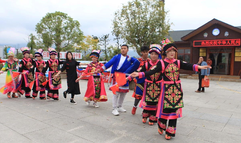 10月1日,身着美丽的羌服、手持鲜艳的小红旗、唱着动听的羌歌、跳着欢快的羌舞,迎来送往各地的游客。