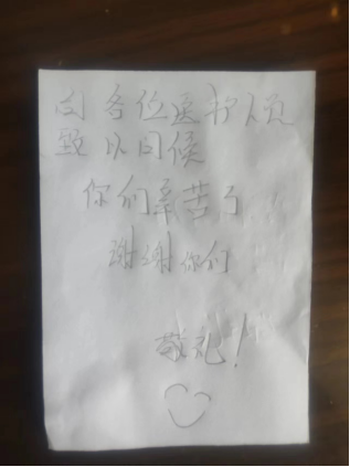 “您心连我心,我们共同牵挂着您的牵挂。”一封封饱含真情的慰问信被送到隔离人员手中,一个个象征团圆的月饼为隔离人员送去了温暖,让隔离人员更加安心隔离。