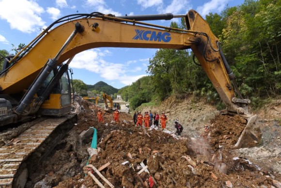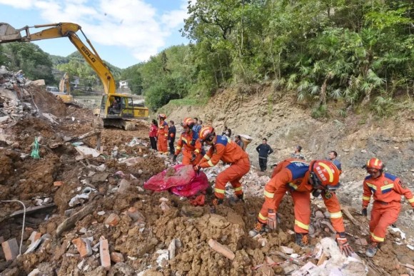 记者在现场看到,滑坡点一片狼藉,泥土和断壁残垣混在一起。多台挖掘机不停运转,一边清理淤泥,一边开辟临时通道。救援人员还第一时间疏通了滑坡体后方的积水,防范发生次生灾害。在安全区域,消防、公安以及街道、村干部,也在细致搜索,尽最大努力为群众挽回财产损失。
