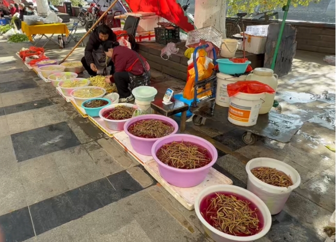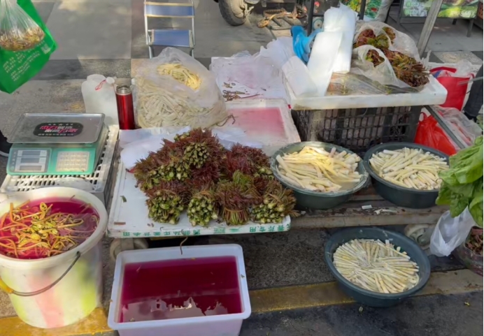 一个个便民摊位依次排开,没有精致的陈设,却满是鲜活生机。带着秦巴山间晨露的春笋、折耳根、野蕨菜等时令山鲜扎堆亮相,鲜嫩欲滴、品相喜人。嫩黄的春笋尖裹着细密白绒,刚从山间泥土中采挖而出,根根饱满;野蕨菜嫩芽卷曲鲜嫩,茎秆上露珠晶莹,尽数展现着纯天然的山野风味,成为早市里最吸睛的景致。