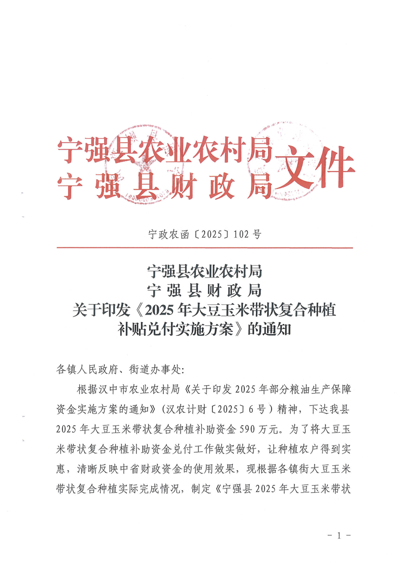关于印发《2025年大豆玉米带状复合种植补贴兑付实施方案》的通知