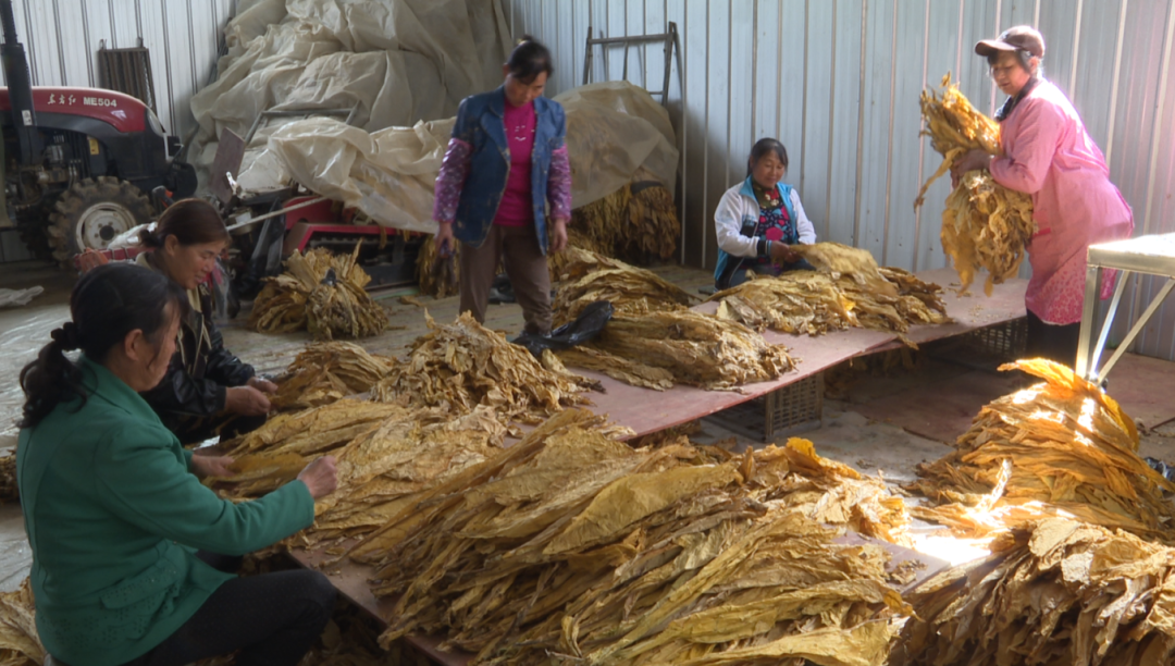在基地的烘烤区,淡淡的烟香萦绕。工人们正紧张有序地进行着卸载、分拣、编杆、入炉等工序。与传统烤房需要人工日夜值守不同,这里的智能化密集烤烟房通过温湿度传感器和自动调控系统,能精准控制烘烤环境,确保烟叶品质稳定。基地负责人苏正俊介绍说:“我们基地今年种植烤烟180亩,已采收35炉,预计还可收获35炉。全年收入预计达90万元,带动当地30户农户务工增收30万元。”
