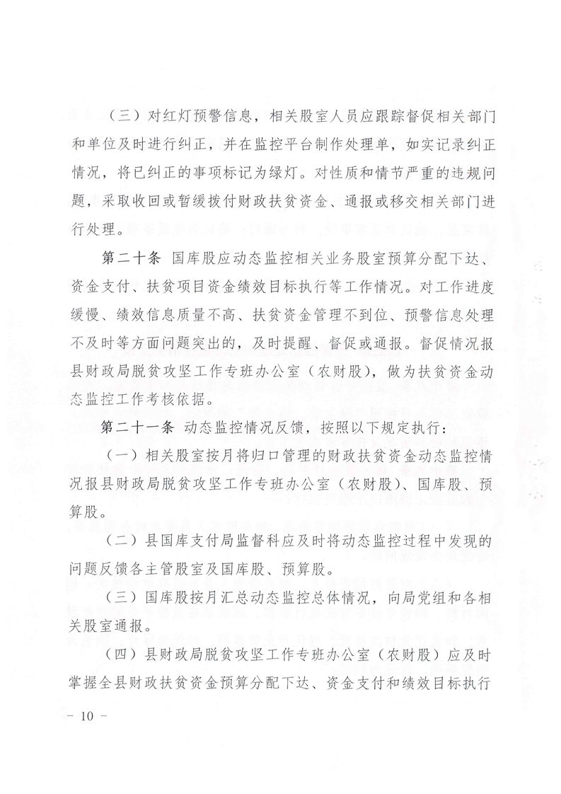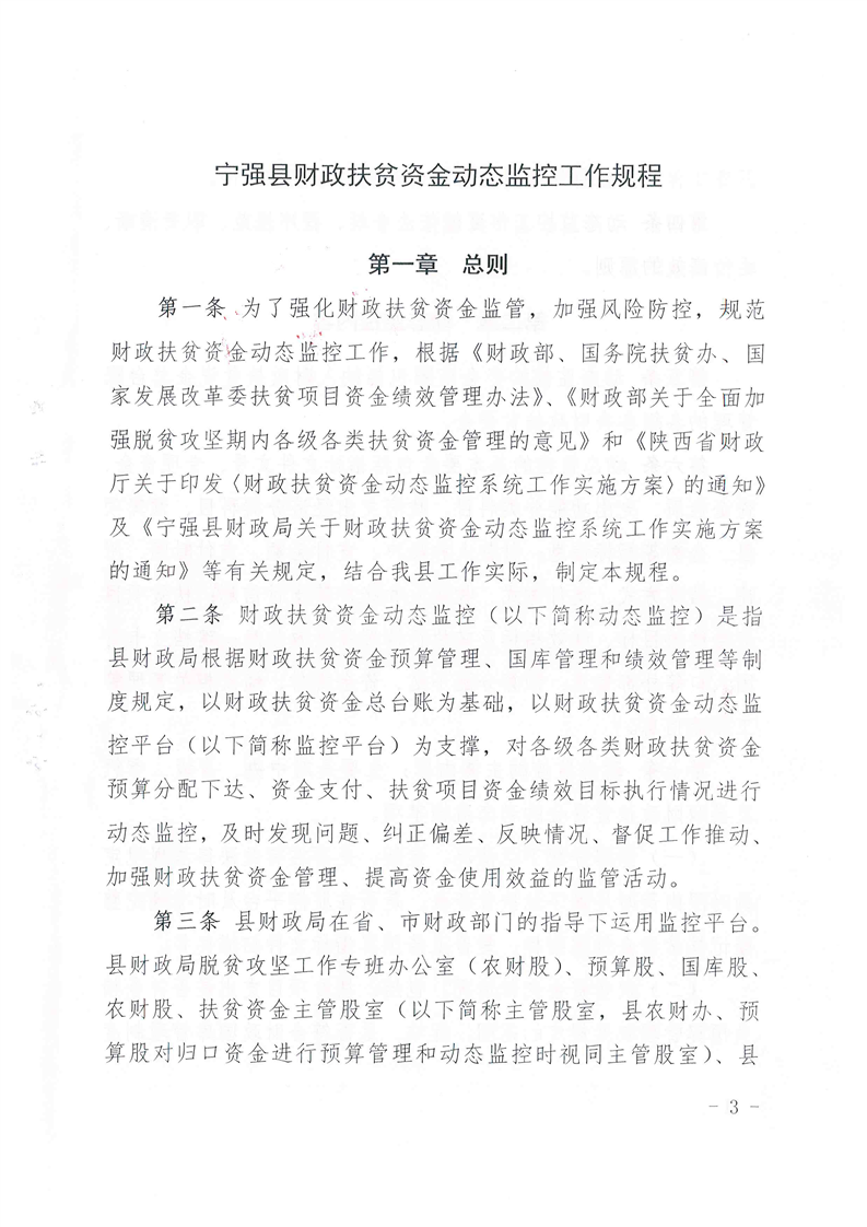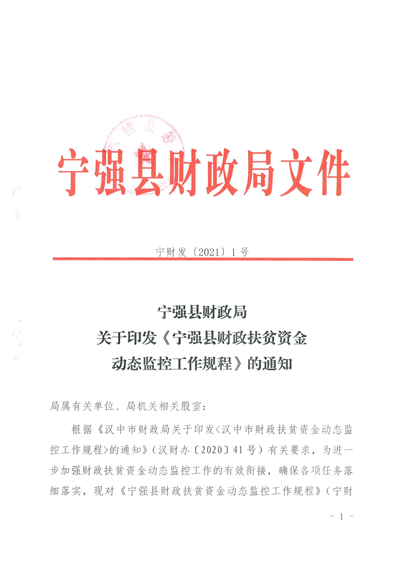 关于印发《宁强县财政扶贫资金动态监控工作规程》的通知