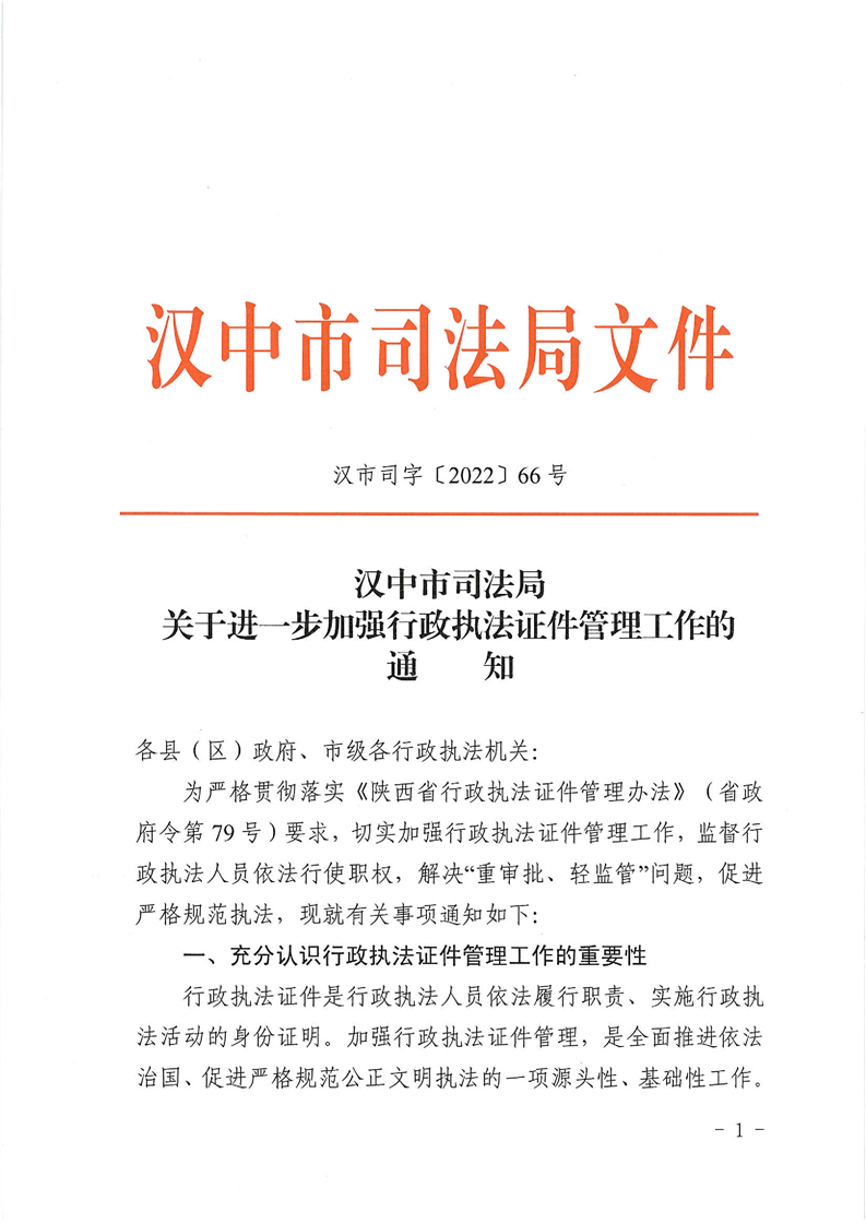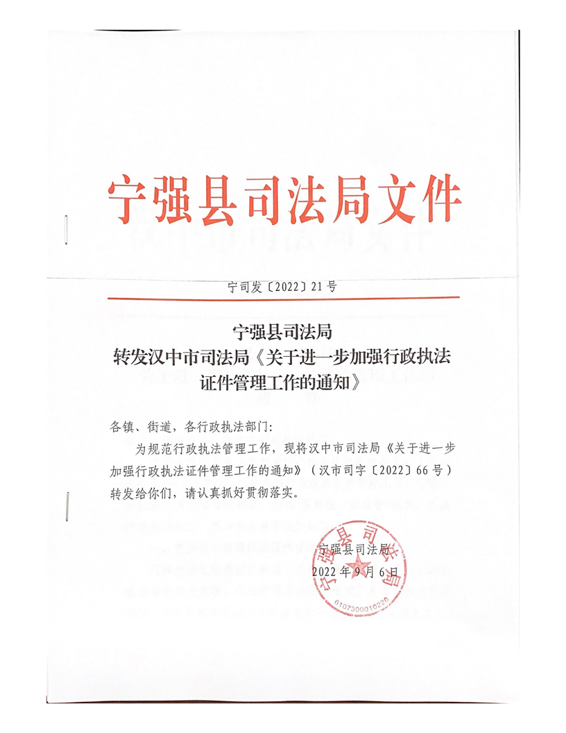 宁强县司法局转发汉中市司法局《关于进一步加强行政执法证件管理工作的通知》