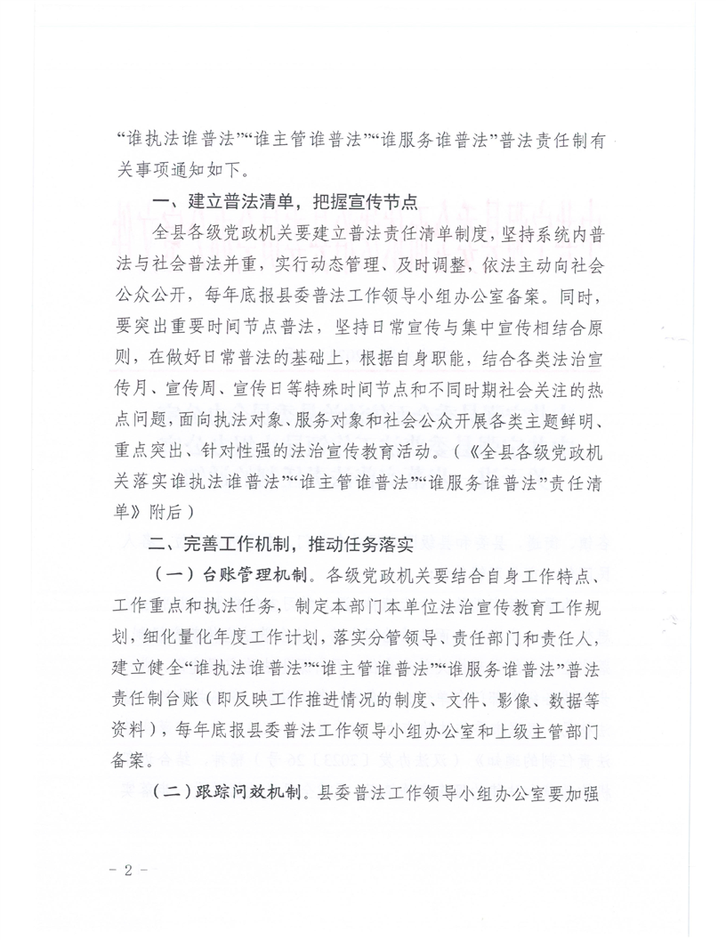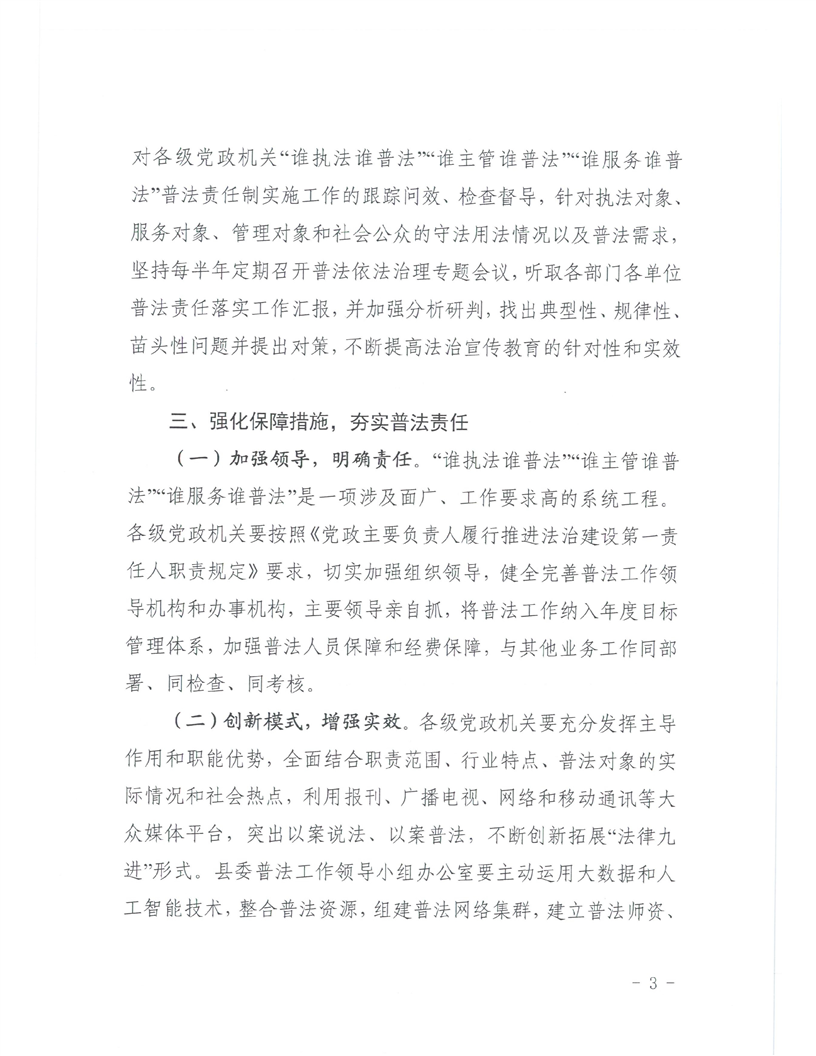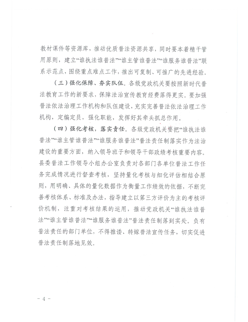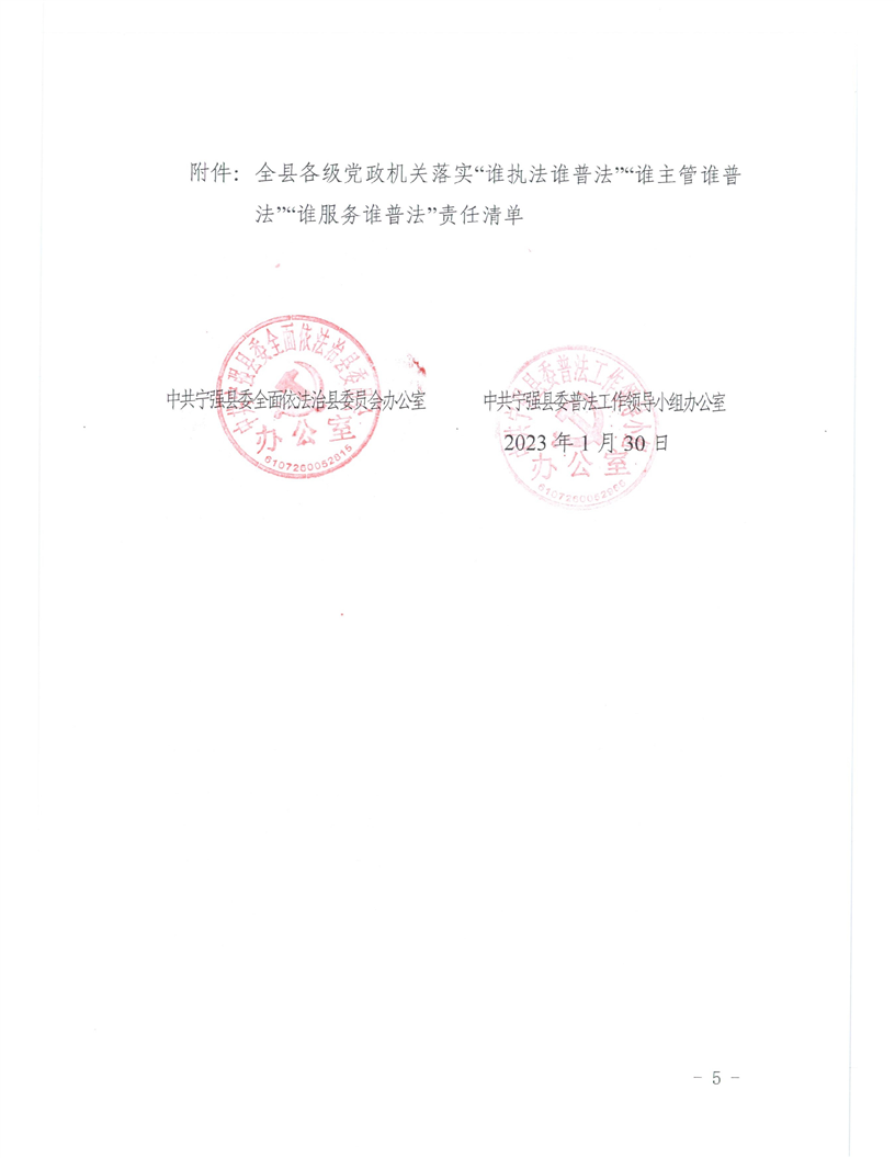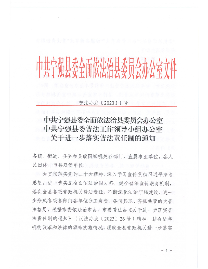 中共宁强县委全面依法治县委员会办公室 中共宁强县委普法工作领导小组办公室 关于进一步落实普法责任制的通知