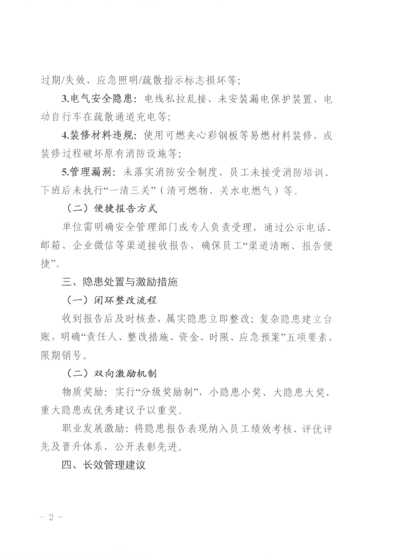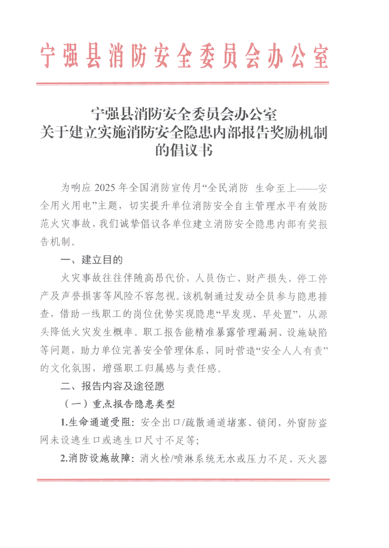 关于建立实施消防安全隐患内部报告奖励机制的倡议书
