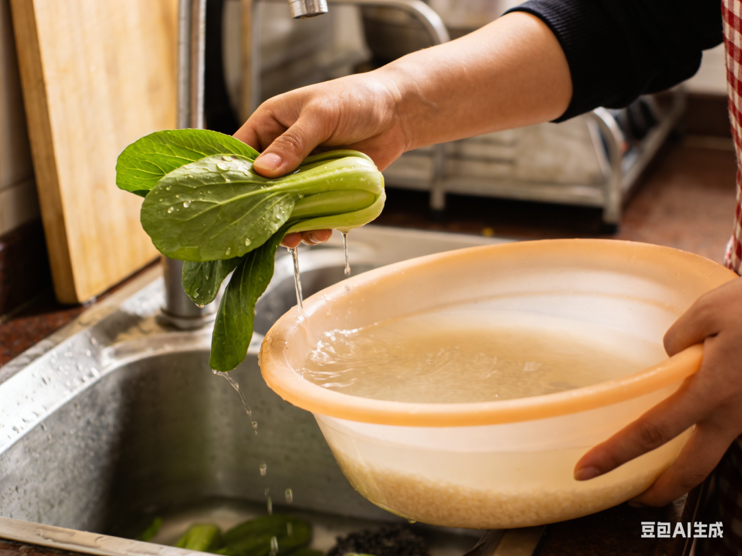 “用淘米水洗菜能更好地去除农药残留,比清水洗得更干净。