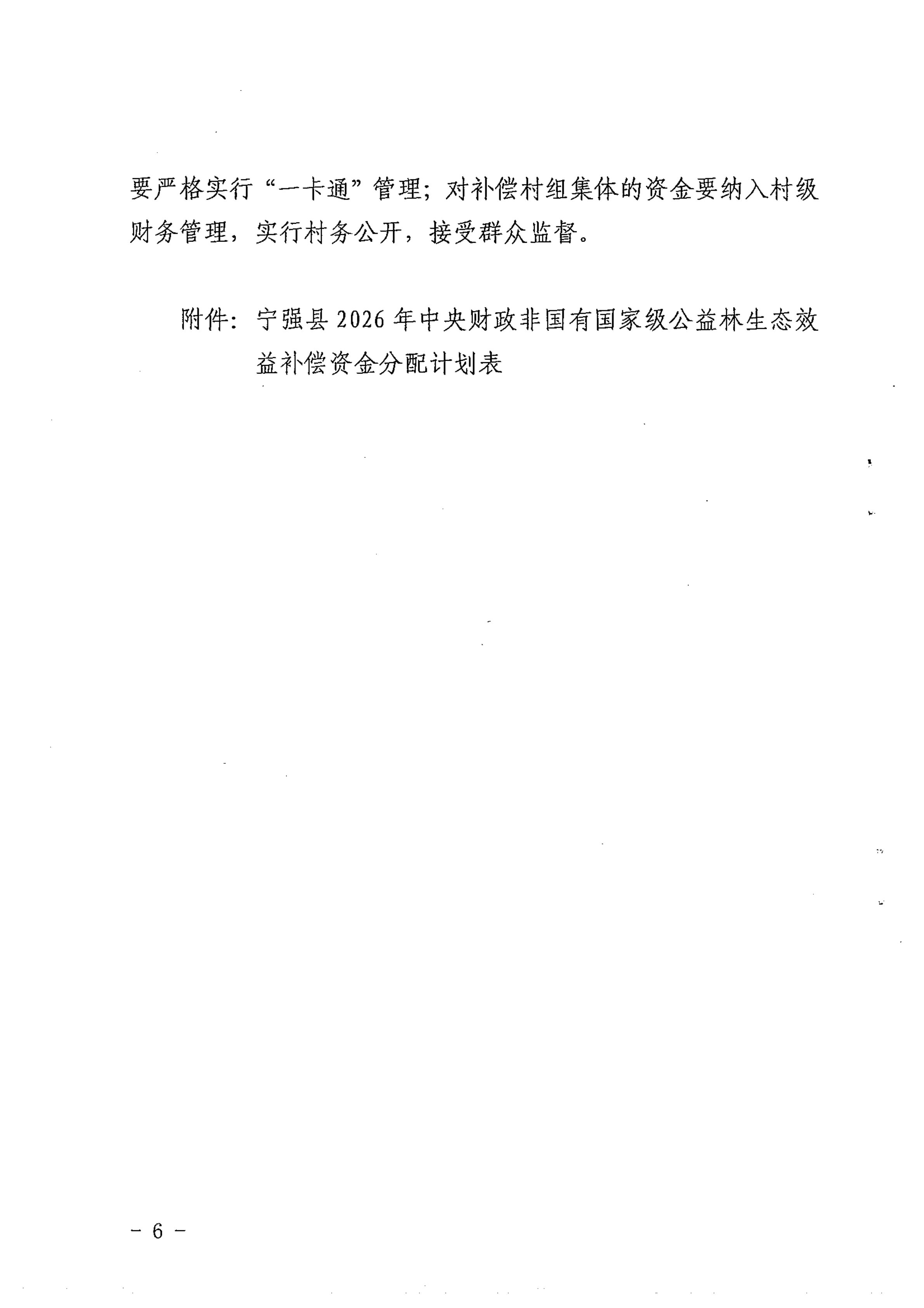 关于印发《宁强县2026年中央财政非国有国家级公益林生态效益补偿资金兑付工作方案》的通知