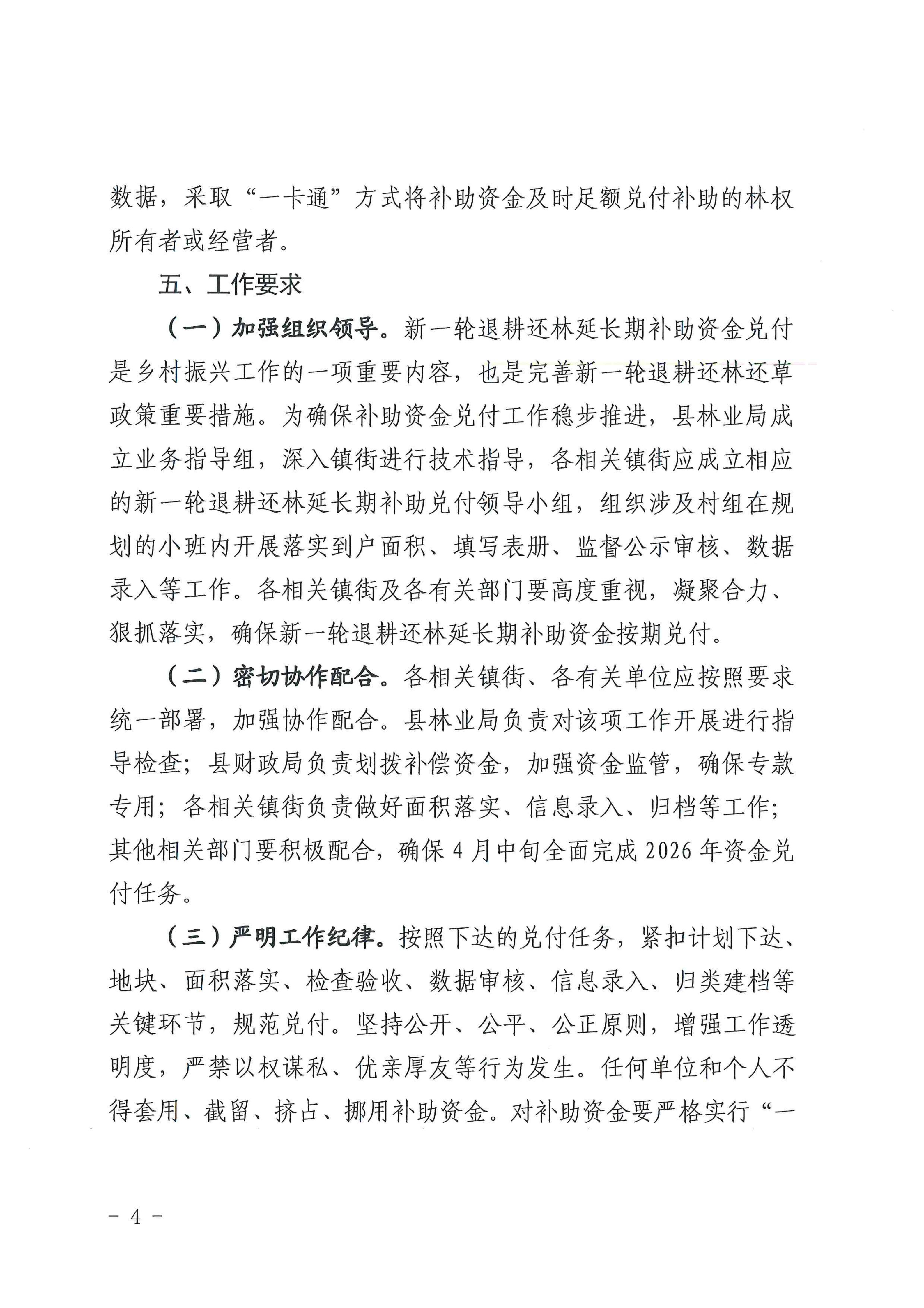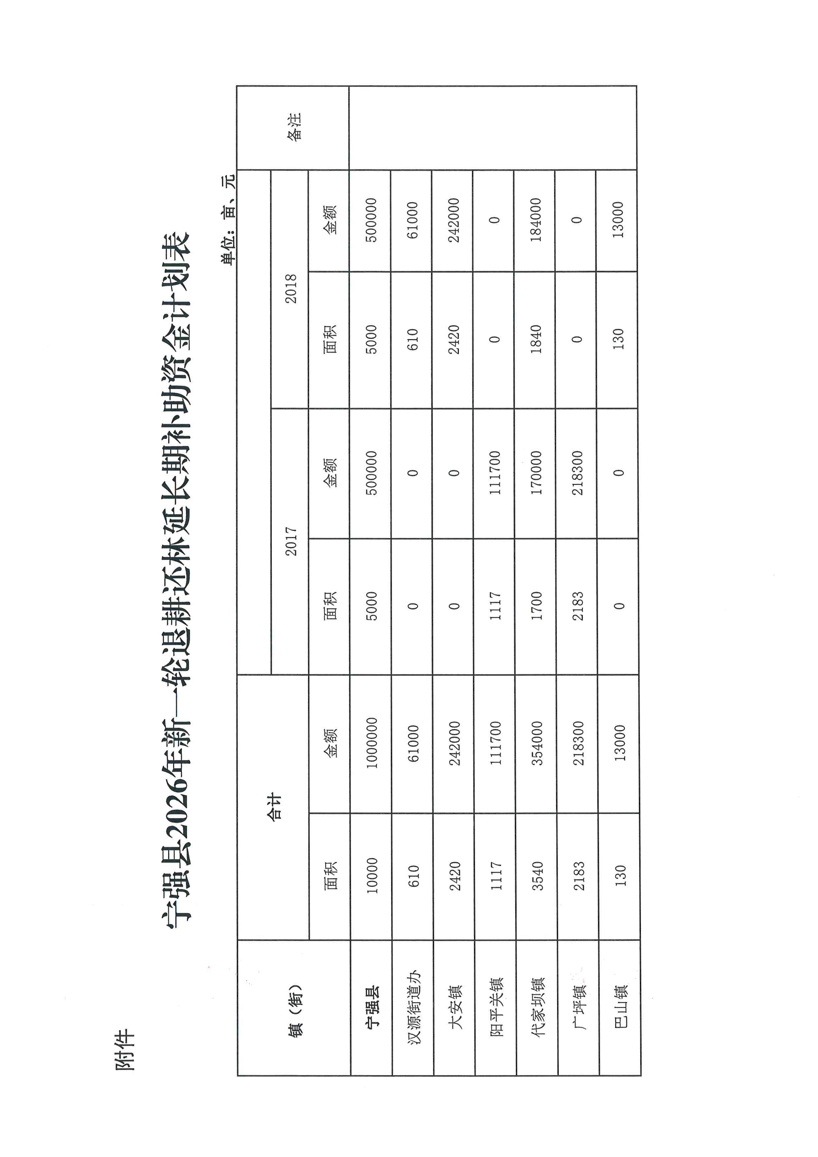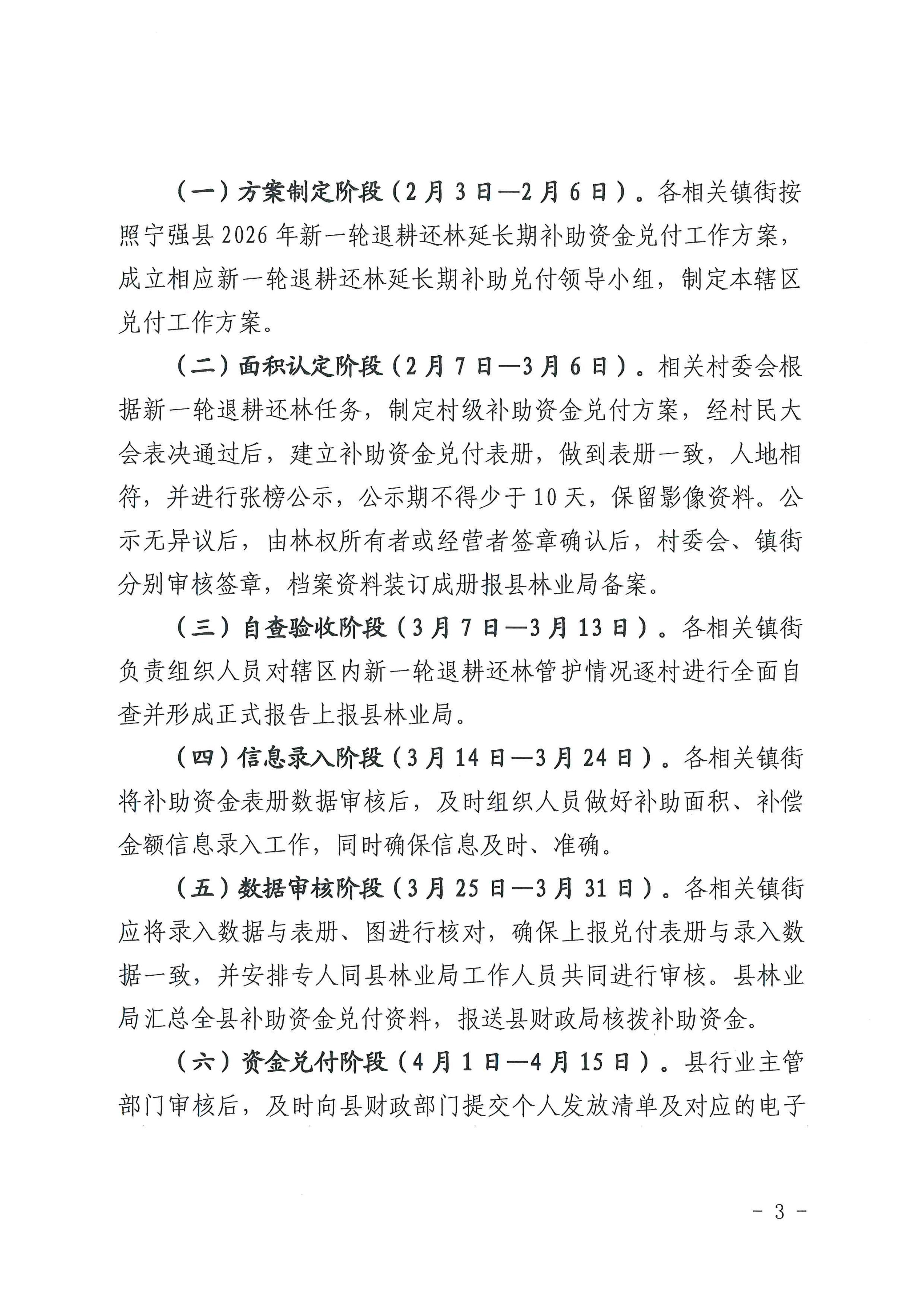 关于印发《宁强县2026年新一轮退耕还林延长期补助资金兑付工作方案》的通知