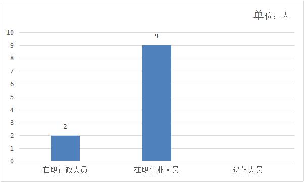 截止2017年底,本部门人员编制10人,全为事业编制;现实有工作人员11人,其中行政2人,事业9人,无退休离职人员,无下属预算单位。