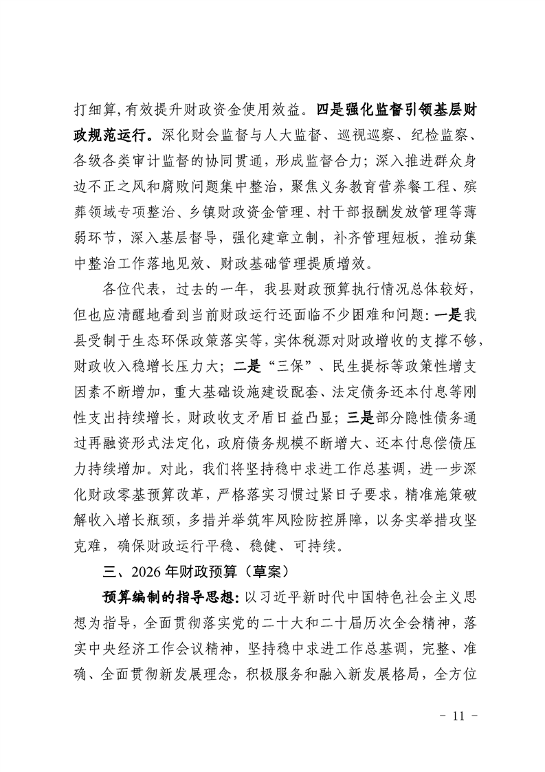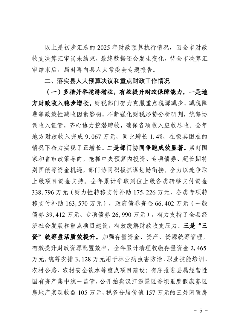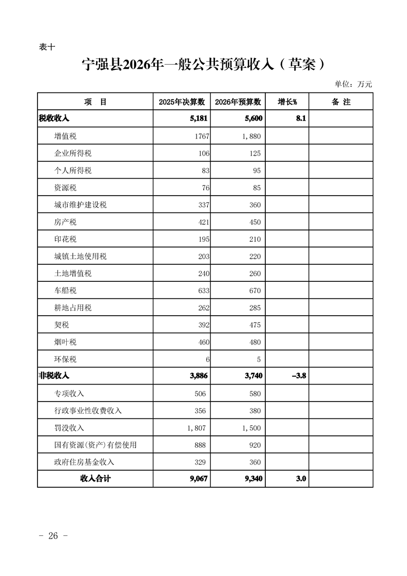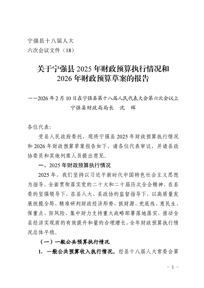 宁强县2025年财政预算执行情况和2026年财政预算草案的报告