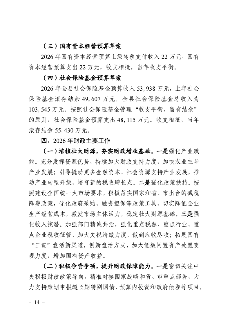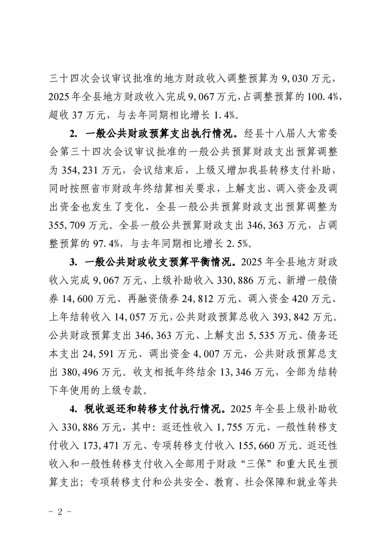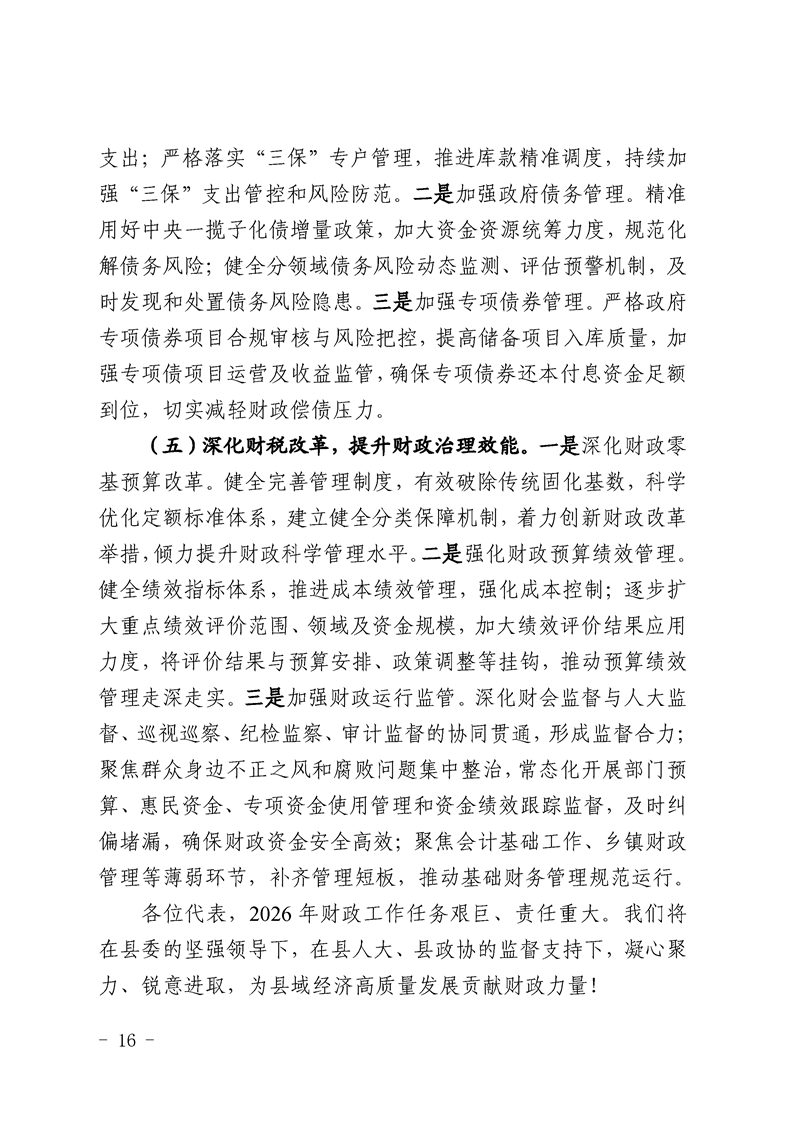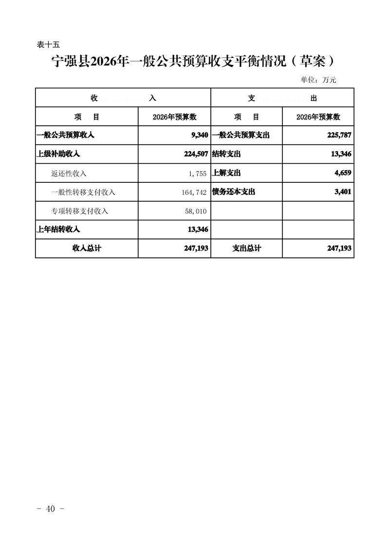 宁强县2025年财政预算执行情况和2026年财政预算草案的报告