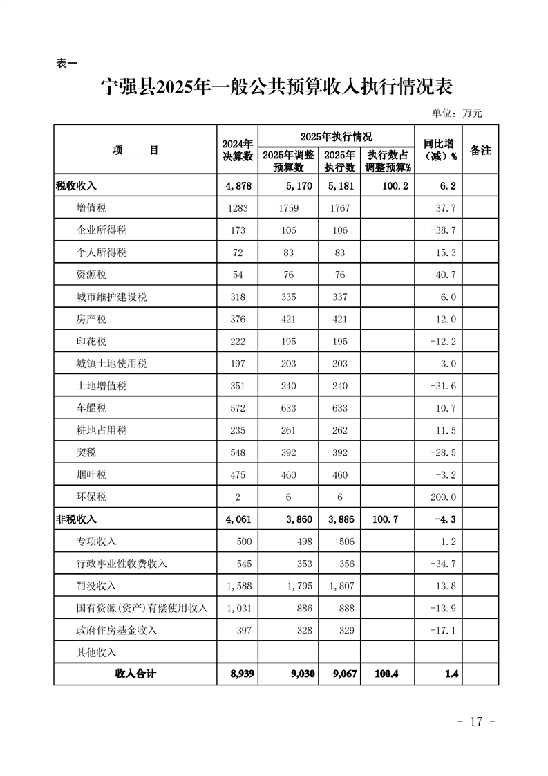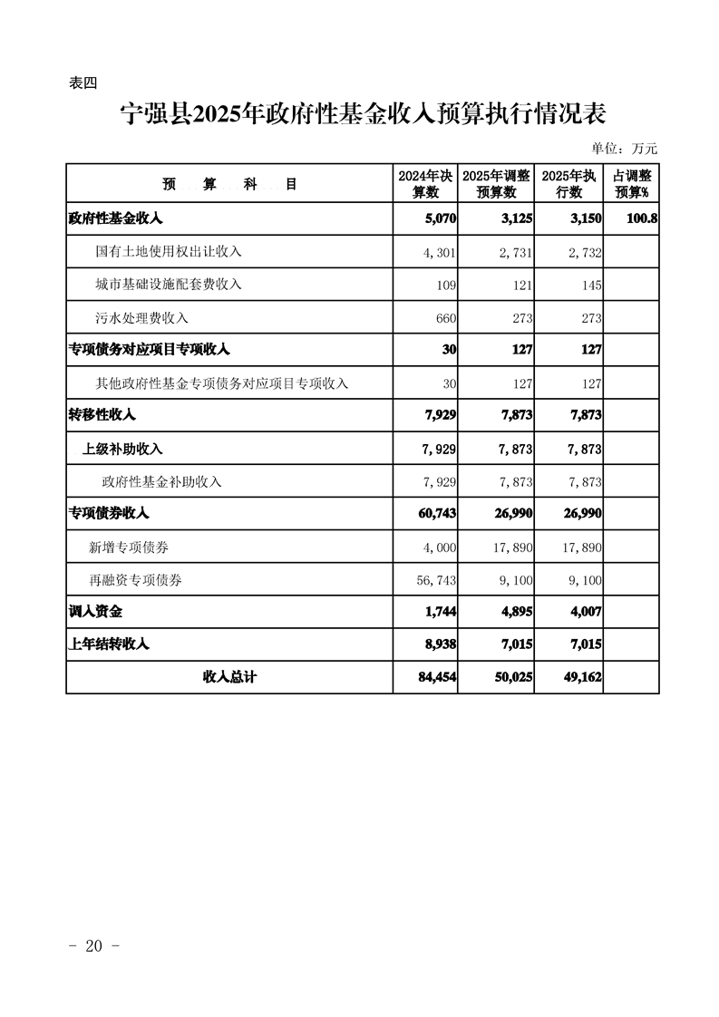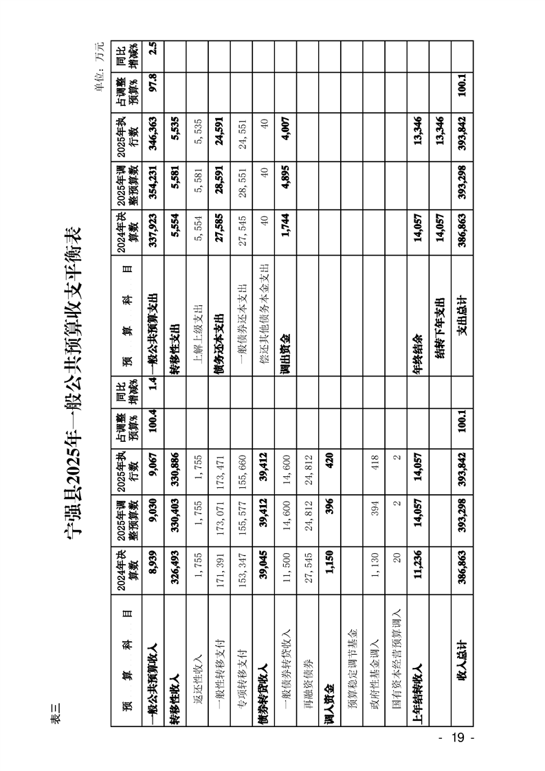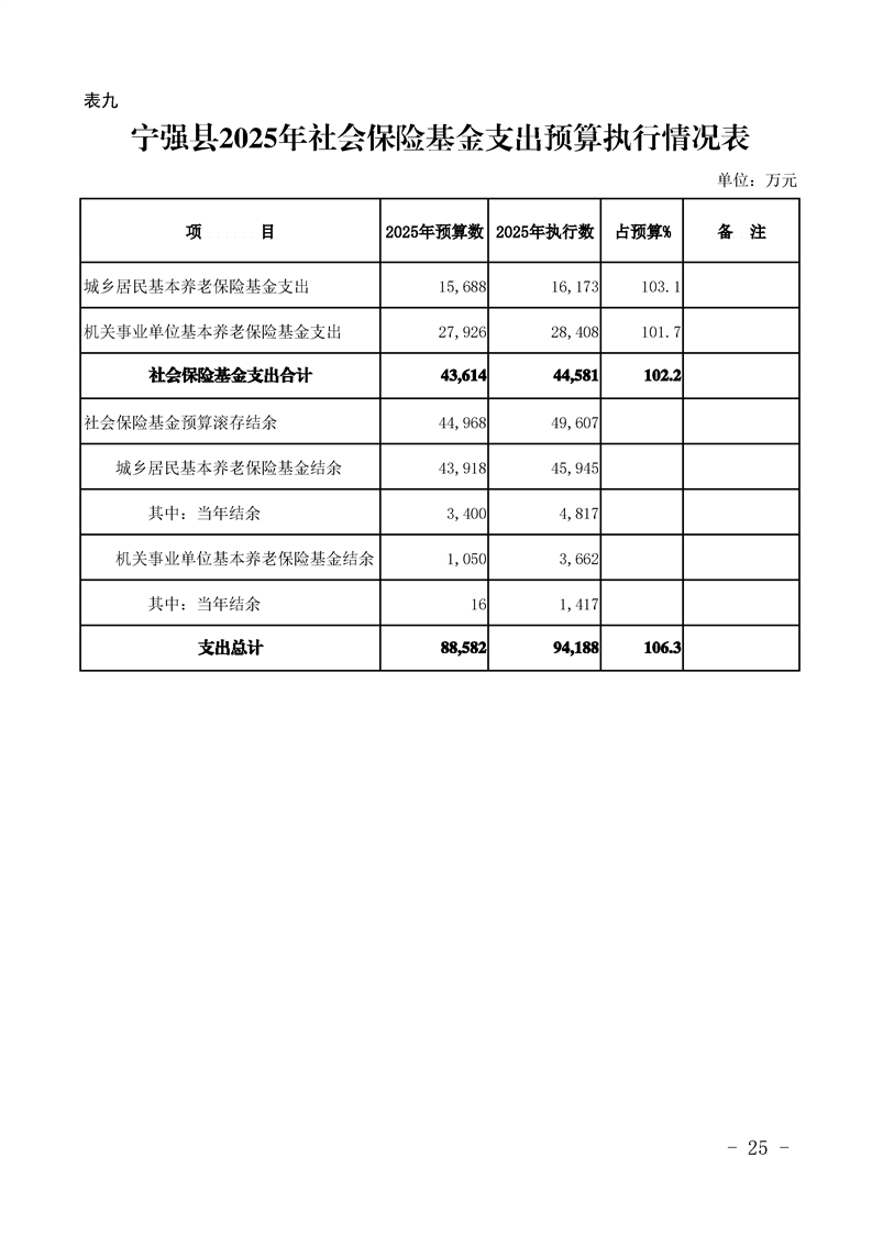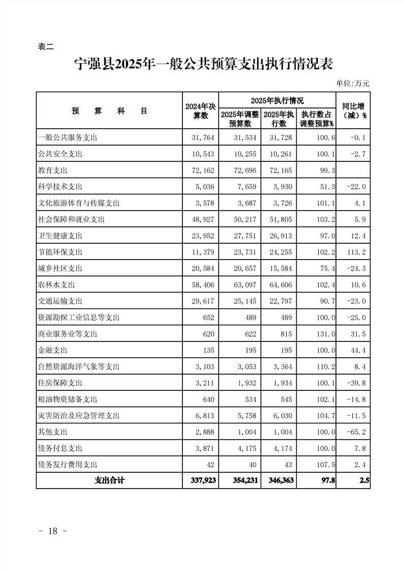 宁强县2025年预算执行情况和2026年预算草案的报告 附表