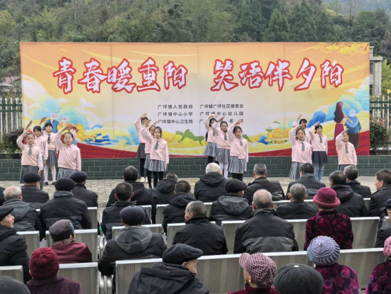 广坪镇中心小学组织三至五年级的师生代表,前往广坪镇敬老院开展重阳节慰问活动。