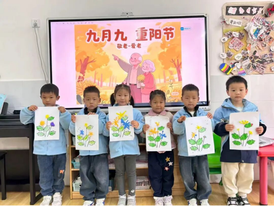 通过精美的图片和动画,老师们为孩子们介绍了重阳节的由来和习俗。孩子们知道了重阳节也叫“老人节”,是一个尊老、敬老、爱老、助老的节日。