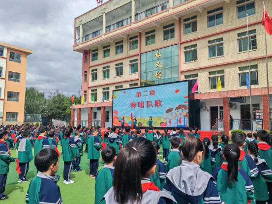 大安镇中心小学举行“争做新时代好队员”建队日全队入队仪式,纪念中国少年先锋队成立76周年。全校师生共同见证了新队员加入少先队组织的光荣时刻。