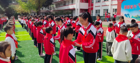 新队员入队仪式上,四年级队员为新成员佩戴红领巾,新老队员共同许下“准备着,为共产主义事业而奋斗”的铮铮誓言。大队辅导员寄语全体队员,希望少先队员们以红领巾为荣,传承红色精神,争当有理想、敢担当的新时代好少年。学校负责人表示,将继续创新德育形式,引导青少年坚定不移听党话、跟党走,努力成长为堪当民族复兴重任的栋梁之才。(文/周莉莎图/张伟哲)