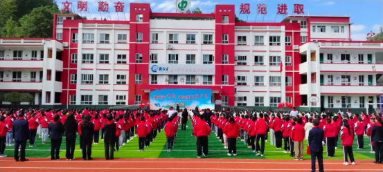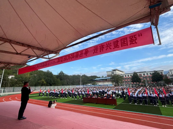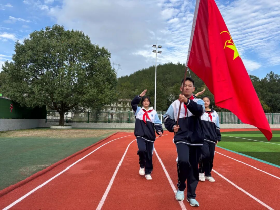 伴随着激昂的出旗曲,旗手们身着整齐校服,迈着坚定有力的步伐,高举鲜红的队旗缓缓入场。全体师生高唱队歌,嘹亮的歌声回荡在校园上空。