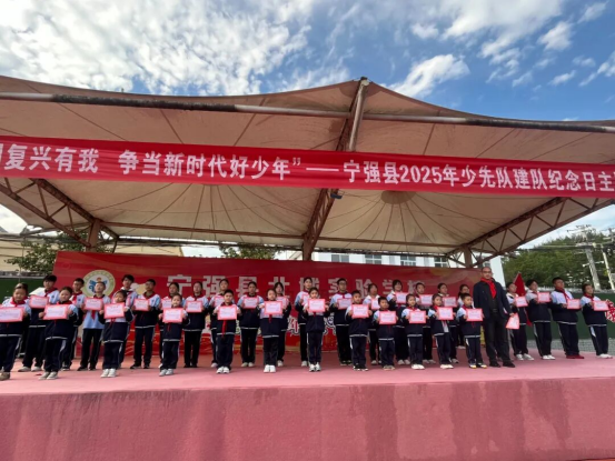 仪式上对2024-2025学年度优秀少先队员进行了表彰。宁强县少先队总辅导员寄语全体队员:“星星火炬照亮成长路,少年有志方能干大事。希望大家从小听党话、跟党走,把‘强国复兴’的种子埋在心里,用知识武装头脑,用实践锤炼本领,成长为能担起民族复兴重任的时代新人!”