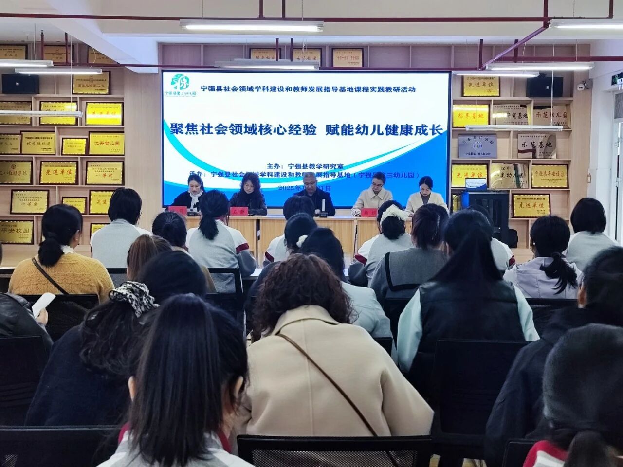 10月31日,宁强县社会领域学科建设和教师发展指导基地“聚焦社会领域核心经验,赋能幼儿健康成长”课程实践教研活动在县第三幼儿园顺利开展,来自全县各幼儿园的50余名骨干教师参加了活动。 活动开篇,县教研室负责人明确了社会领域教学的核心方向与实践路径,提出依托学科基地辐射带动、聚焦核心经验、创新教学方法、提升学前教育社会领域教育质量。来自县幼儿园、第三幼儿园的三位教师分别为大家带来精彩的社会领域公开课,提供了鲜活的教学实践案例。第三幼儿园李晶老师执教的《特别的我》,通过互动游戏、自我分享等环节,引导幼儿正确认知自我、接纳自我,帮助幼儿建构自我认识、自我体验、自我调节的核心经验。第三幼儿园张欣丽老师执教的《珍惜时间》,以趣味游戏和生活情境为载体,帮助幼儿建立时间感知,自律习惯、理解时间管理的重要意义。县幼儿园张晶老师执教的《兔奶奶进城》,借助情境创设、猜疑提问、小组讨论等形式,引导幼儿学会观察细节、类比推理,有效培养了幼儿的社会环境认知、增强了幼儿对家乡的爱和归属。 公开课展示后,三位执教教师从目标达成、环节设计、幼儿发展、师幼互动等方面进行深度复盘,反思教学过程中的收获与不足。参会教师围绕社会领域核心经验的有效落实与活动实施的有效性与生成性等话题展开热烈研讨。大家各抒己见,既肯定了活动的亮点,也提出了优化建议,在思维碰撞中深化了对社会领域教学的见解,为后续教学实践积累了实践经验。 第三幼儿园园长带来专题讲座《高质量背景下儿童与同伴友好交往的思与行》。她结合理论研究与实践案例,从四个维度系统阐释了幼儿在人际交往能力培养方面的问题和方法,为教师开展社会领域教育提供了专业指导与方法借鉴,助力幼儿健康成长。 本次教研活动通过多元教研模式与深度实践探索,助力我县学前教育社会领域教育教学提质增效,为幼儿成长、教师专业发展及学前教育高质量发展赋能。(文图/张欣丽 王诗卉)