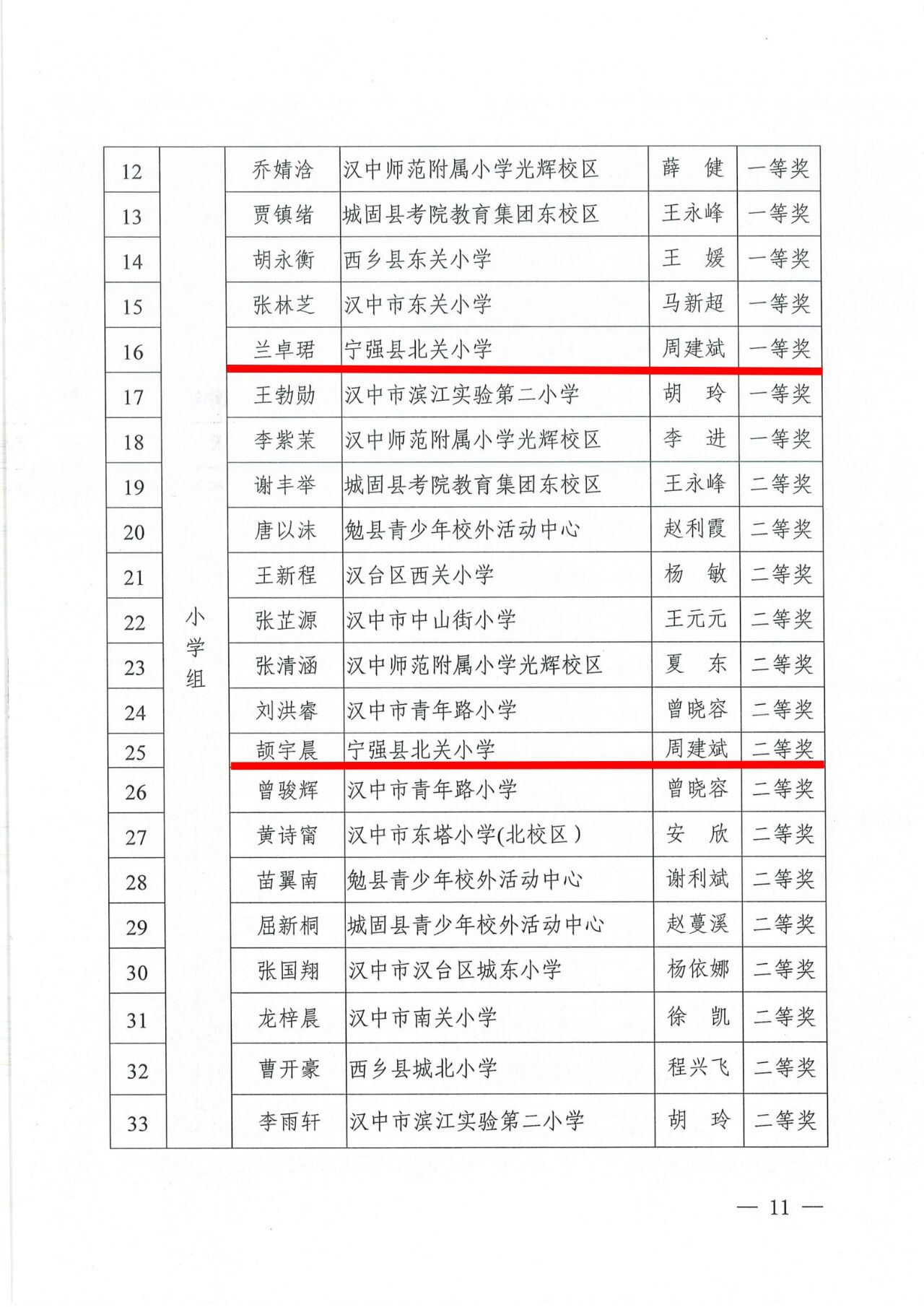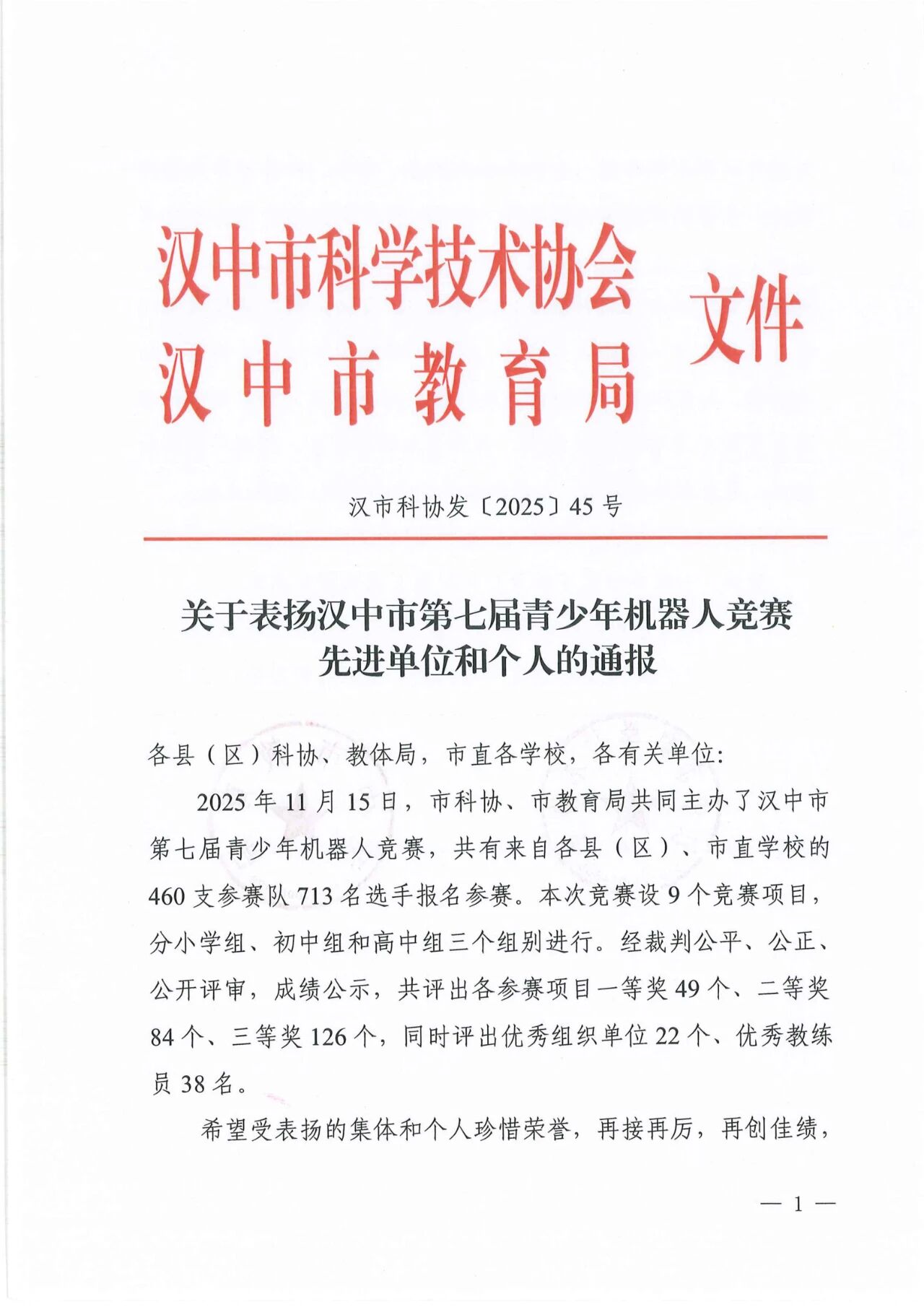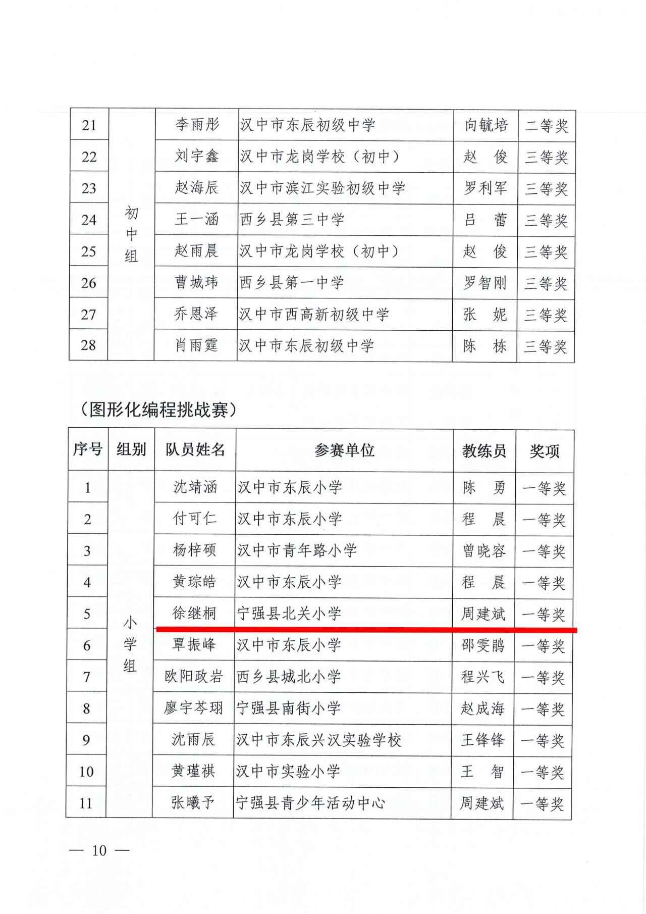 近日,由汉中市教育局、汉中市科学技术协会联合举办的第七届汉中市机器人竞赛落下帷幕。宁强县北关小学编程社团5名学生参赛并全员获奖:徐继桐、兰卓君获一等奖,颉宇晨获二等奖,罗陈浩、张莉萍获三等奖;指导教师周建斌被授予“优秀教练员”称号。