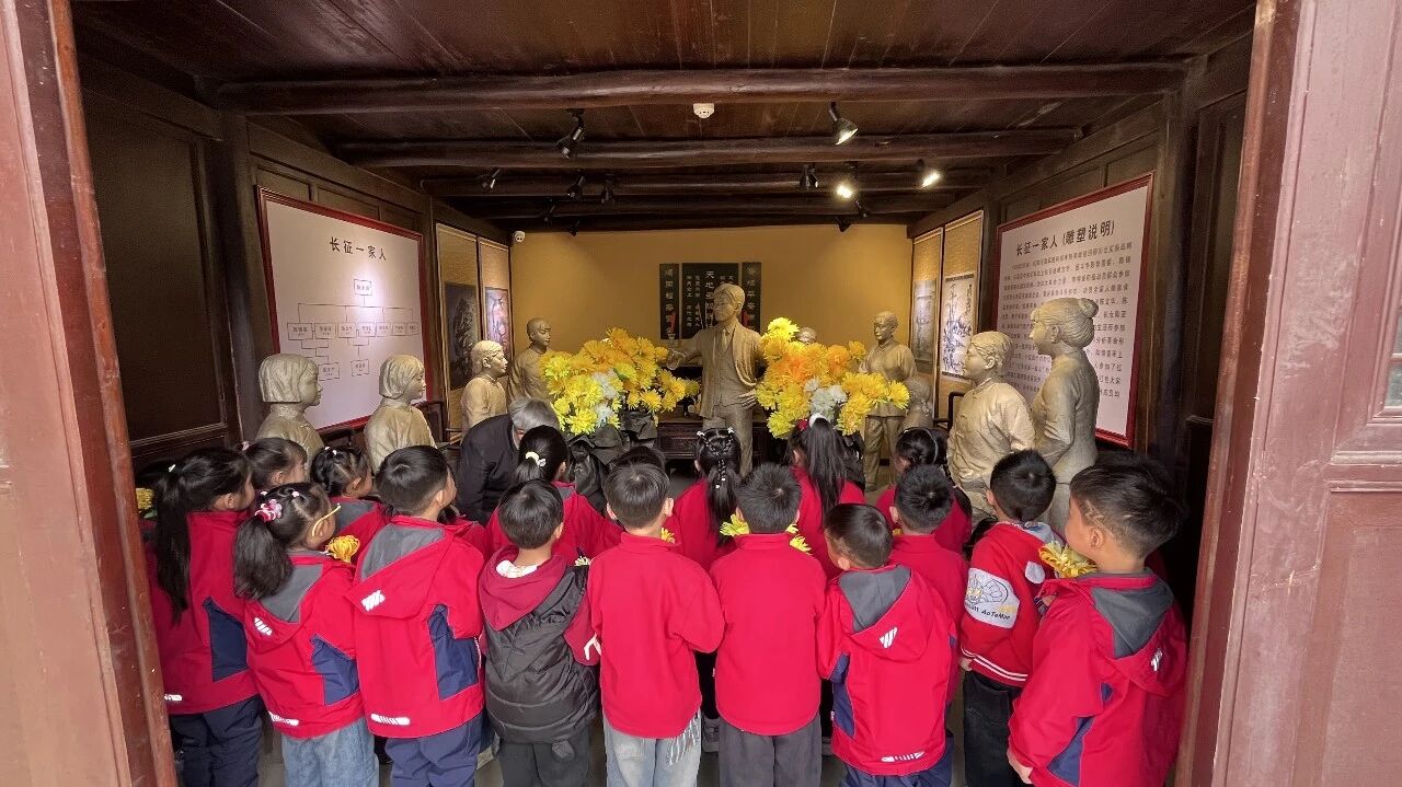 活动前,老师通过图片和视频,给孩子们讲了陈锦章一家勇敢参加红军的故事,教大家学习了乘车安全和祭扫礼仪,让孩子们带着满满的敬意与好奇,开启这场特别的红色之旅。小朋友们排着整齐的小队伍,有序乘车来到故居。在讲解员的带领下,大家安静肃立,向烈士默哀一分钟,献上了亲手准备的菊花,用小小的举动表达深深的怀念。孩子们认真参观故居,听英雄的革命故事,摸一摸老物件,感受革命先辈的勇敢与奉献。活动让孩子们在行走中学习,在缅怀中成长。该园表示将继续用孩子们喜欢的方式,把爱国的种子种进每一颗童心,让英雄精神代代相传。(文/胡艳琴 图/大班组)