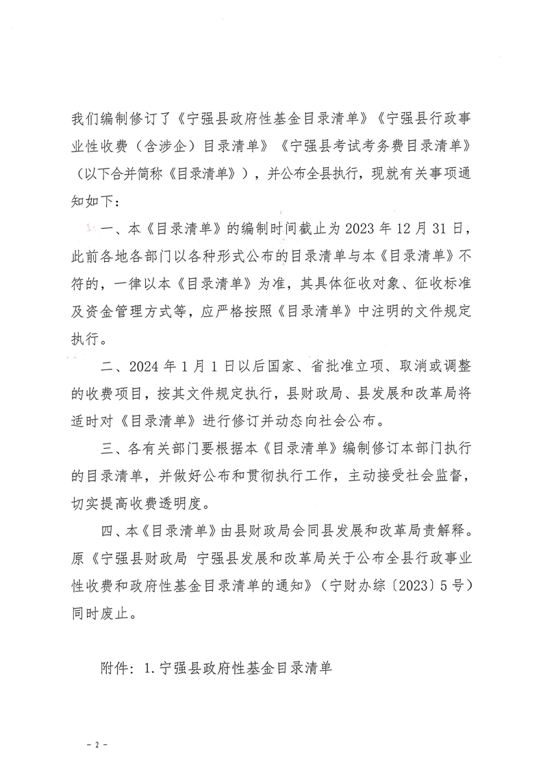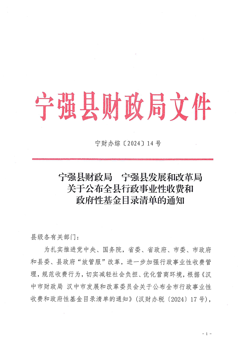 宁强县财政局 宁强县发展和改革局关于公布全县行政事业性收费和政府性基金目录清单的通知