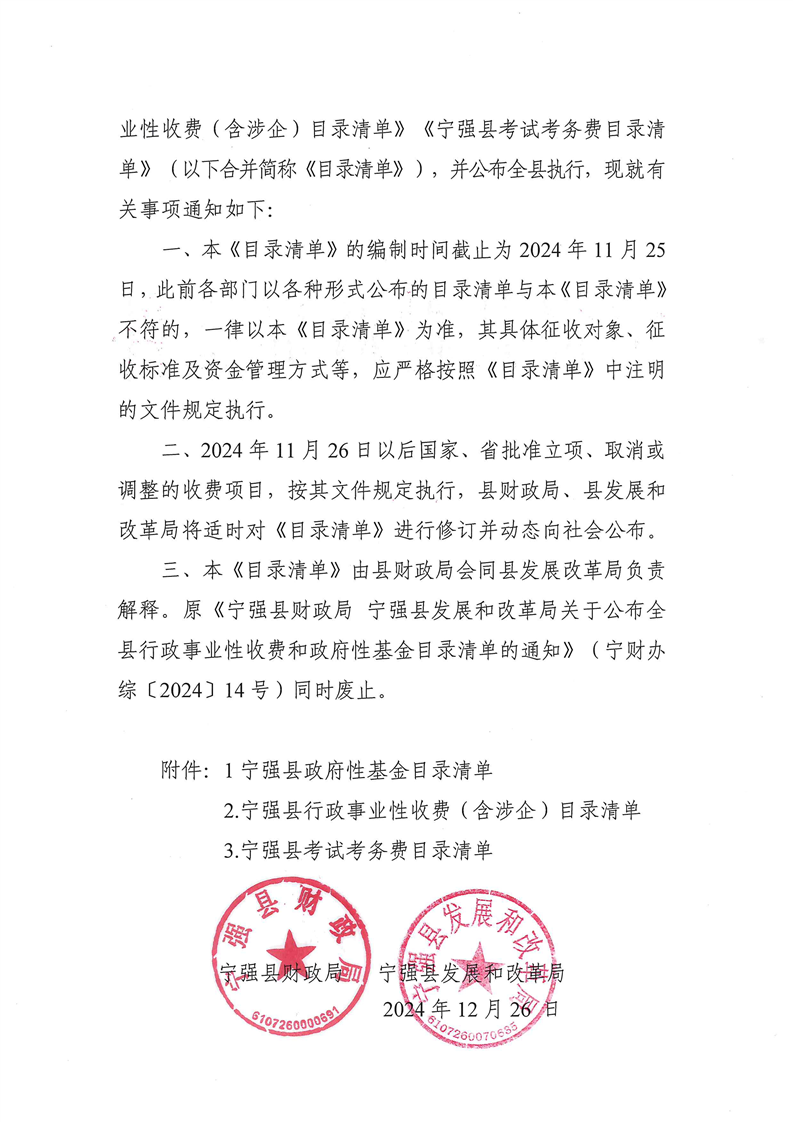 宁强县财政局宁强县发展和改革局关于修订全县行政事业性收费和政府性基金目录清单的通知
