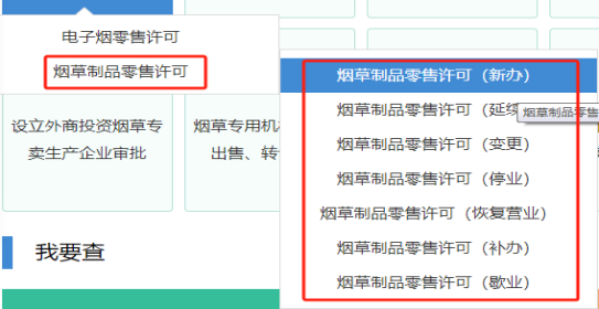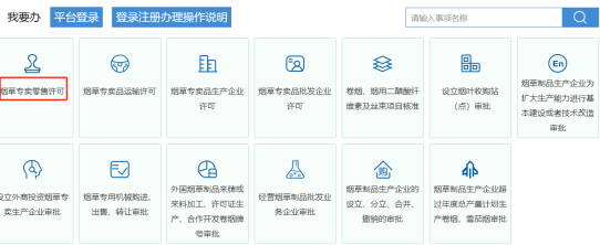 ②网上操作流程:登录国家烟草专卖局→点击办事服务→烟草专卖零售许可→烟草制品零售许可→选择需办理业务→在线办理