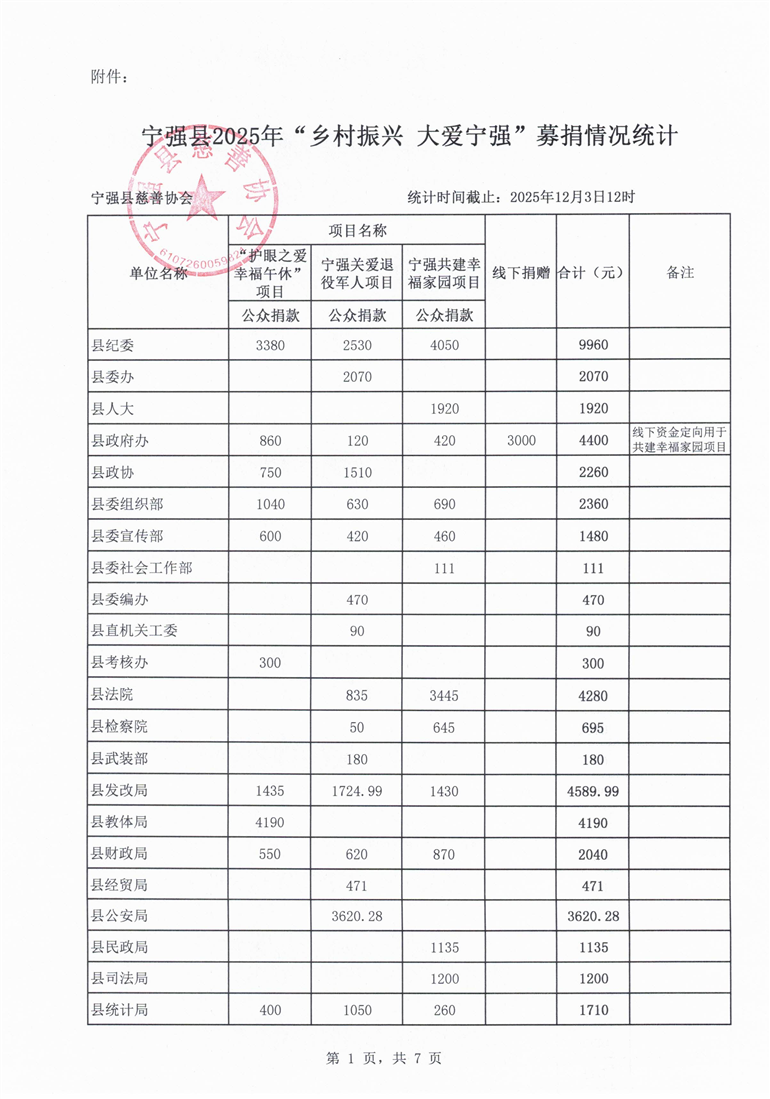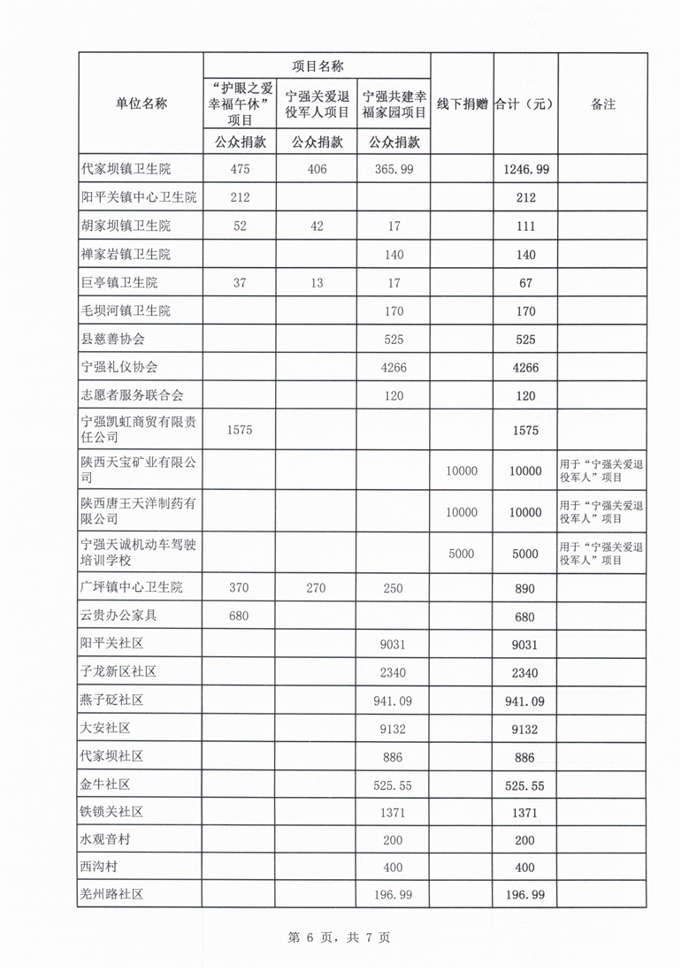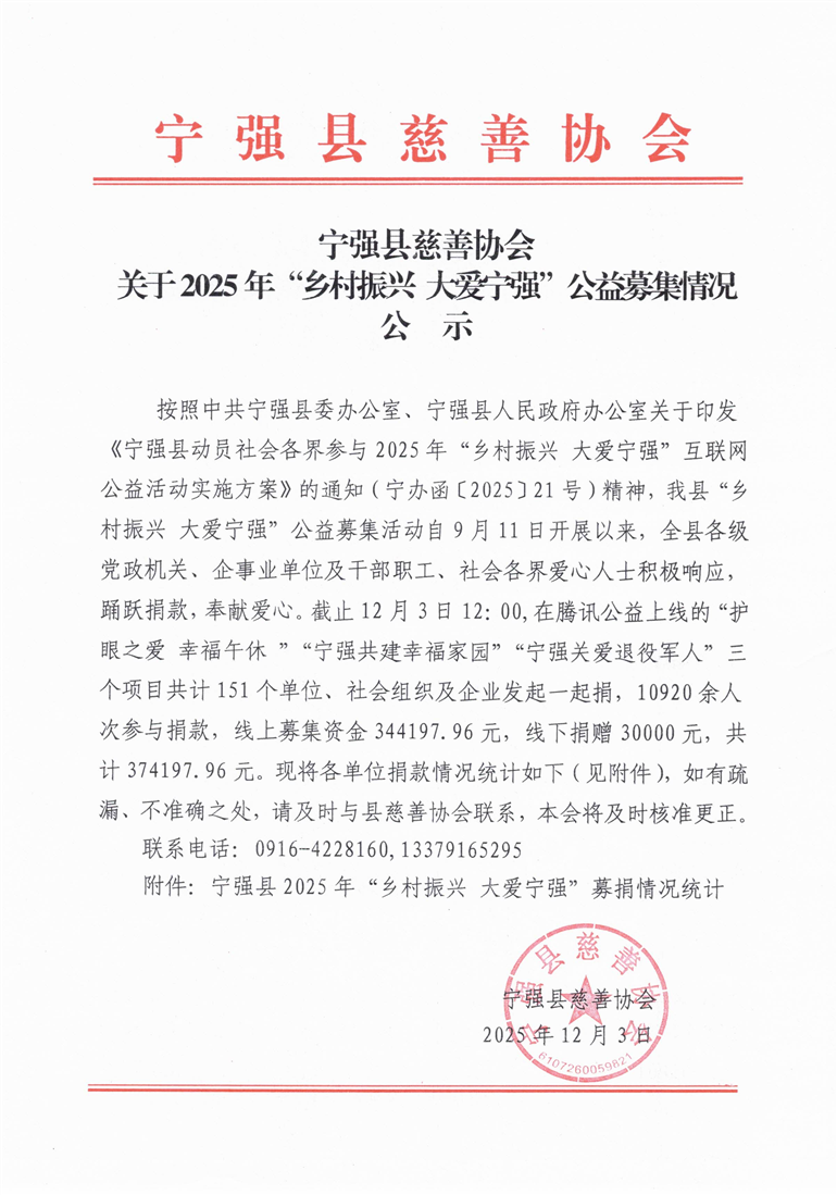 宁强县慈善协会关于2025年“乡村振兴 大爱宁强”公益募捐情况公示