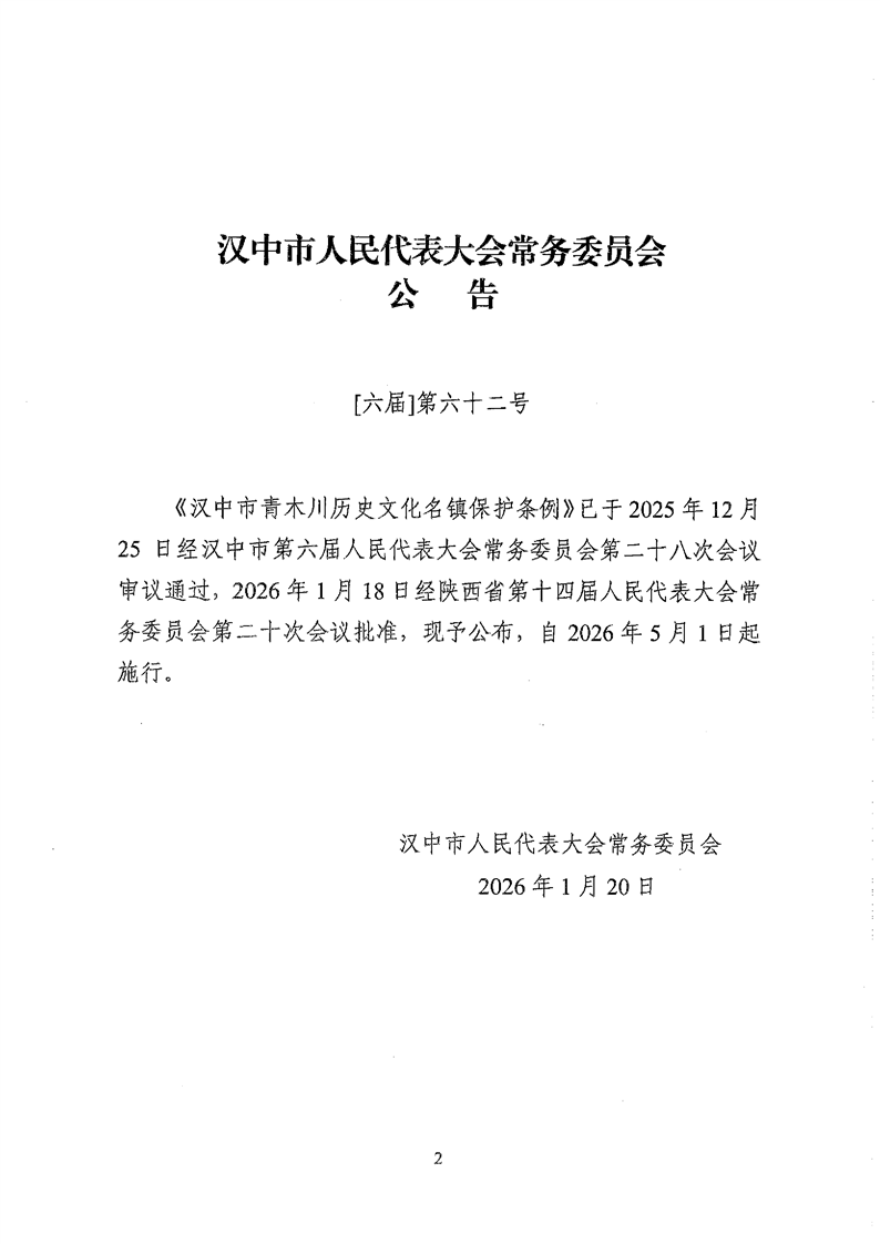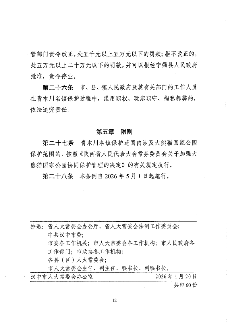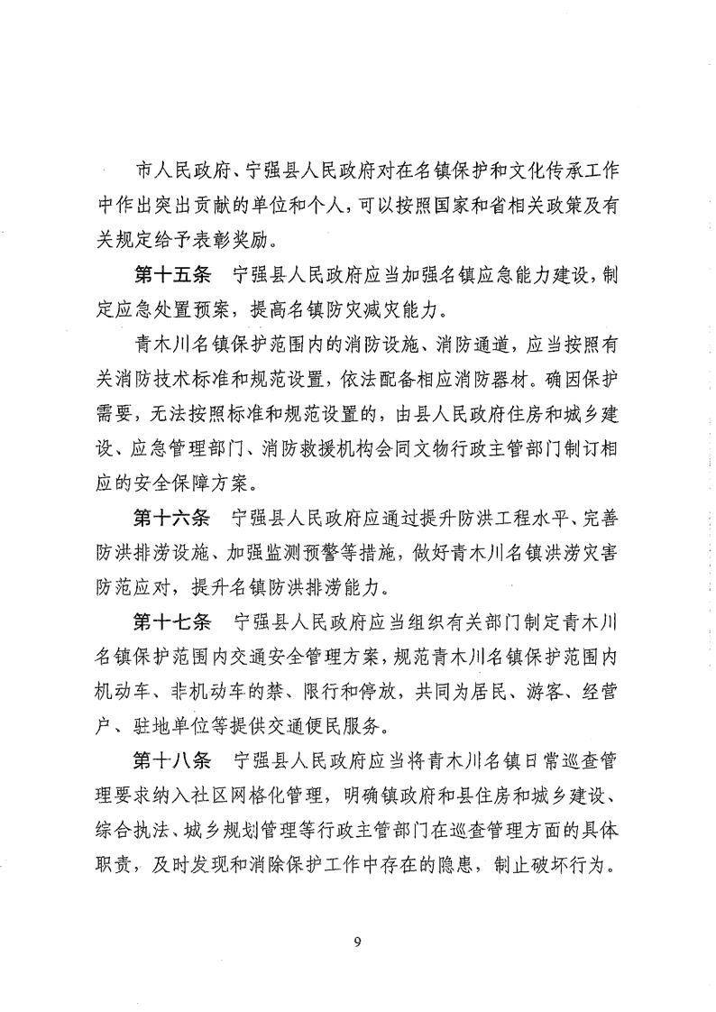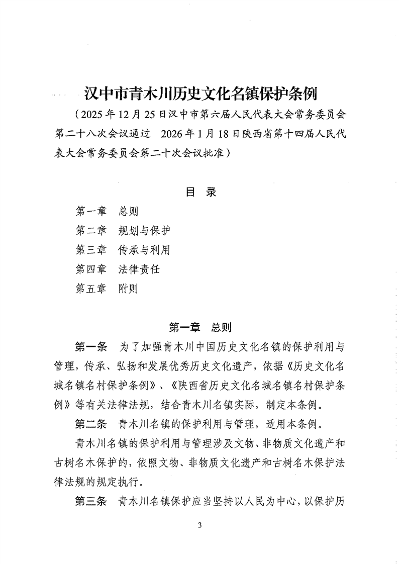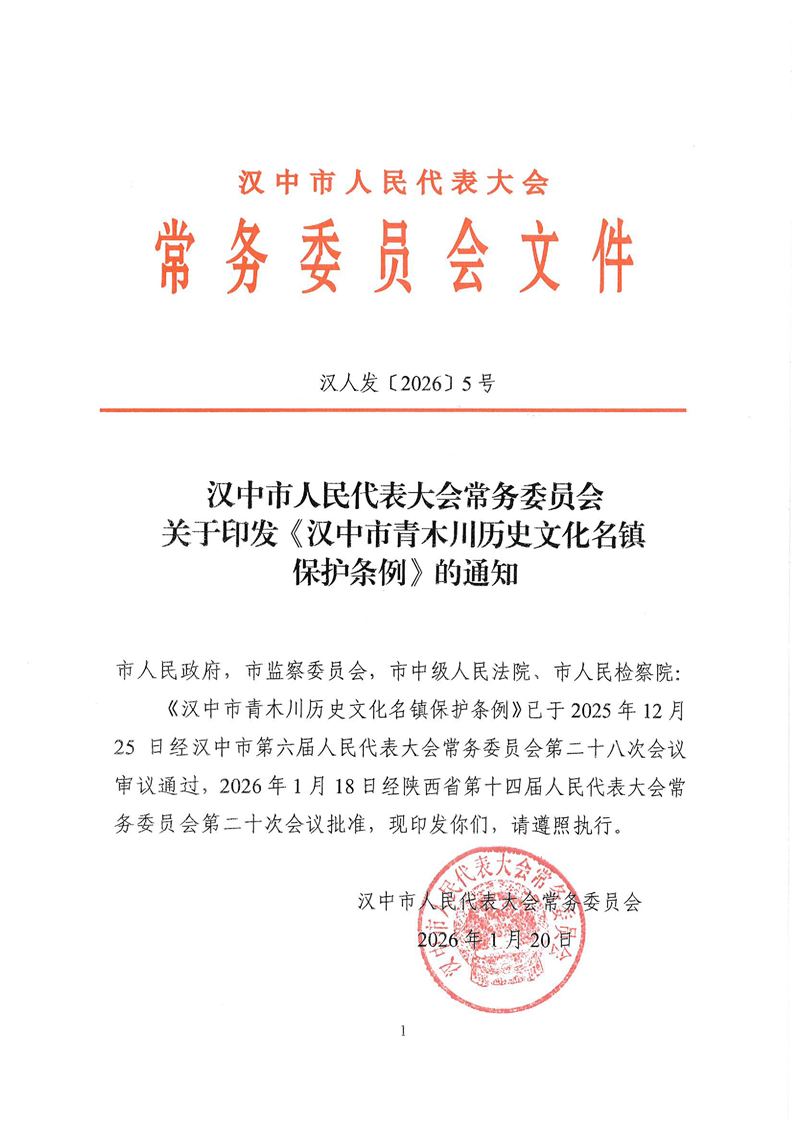 关于印发《汉中市青木川历史文化名镇保护条例》的通知