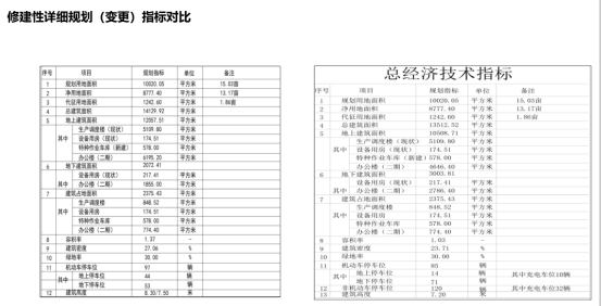 变更内容:总建筑面积由14129.92㎡变为13512.52㎡;地下建筑面积2072.41㎡变为3003.81㎡;地上建筑面积由12057.51㎡变为10508.71㎡;容积率由1.37变为1.03;建筑密度由27.06%变为23.71%;绿地率仍为30.00%;机动车停车位由97辆变为85辆。现修建性详细规划各项指标均满足要求。