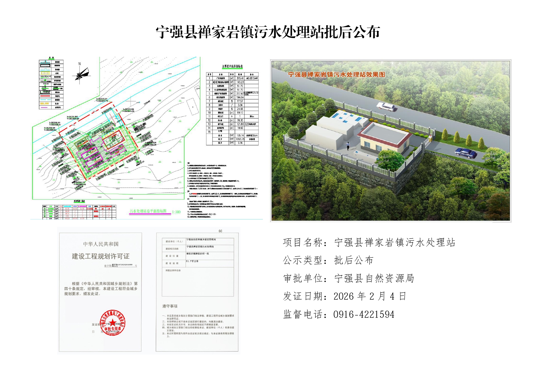 宁强县禅家岩镇污水处理站批后公布