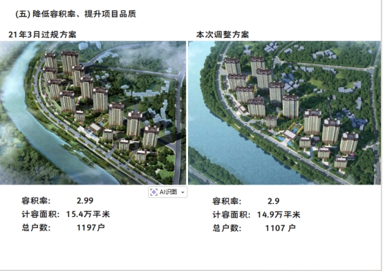 变更内容:对2、3、5、7、10#建筑单体进行调整,调整后总建筑面积由186264.82㎡变为184210.33㎡;地下建筑面积由32000㎡变为34768㎡;地上建筑面积由154264.82㎡变为149442.33㎡;容积率由2.99变为2.9;建筑密度由22%变为21.11%;绿地率仍为35%;机动车停车位由1542辆变为1495辆。现调整方案各项指标均满足要求。