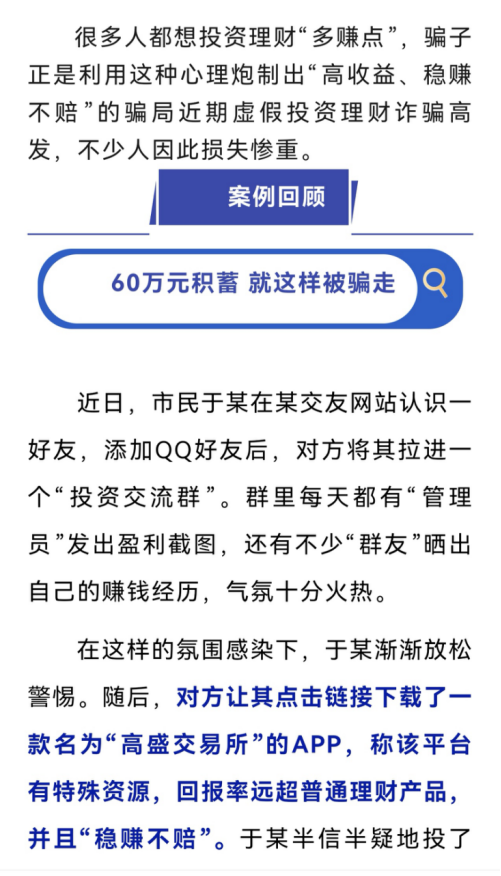关于警惕投资理财类诈骗的风险提示