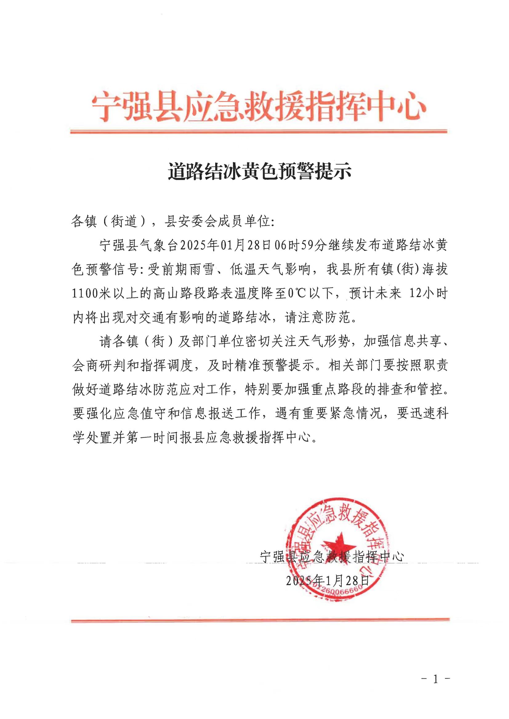 道路结冰黄色预警提示1.28