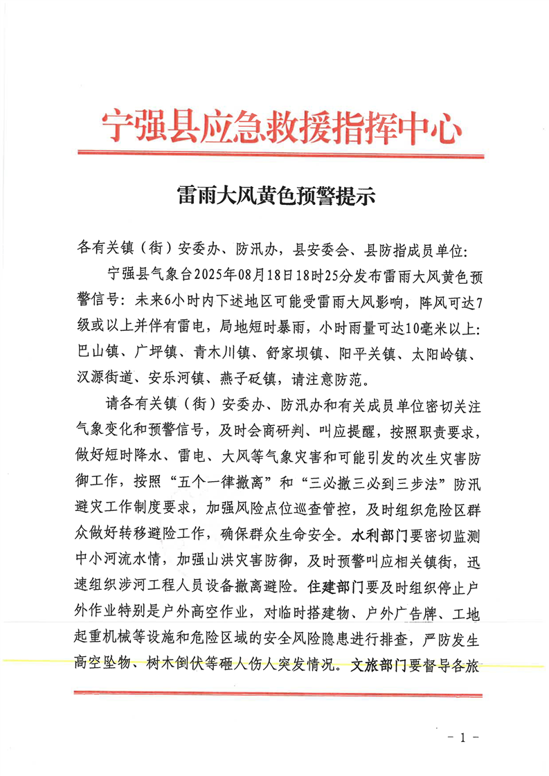 雷雨大风黄色预警提示8.18
