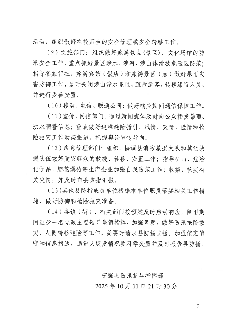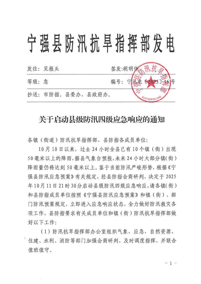 宁汛电【2025】16号关于启动县级防汛四级应急响应的通知