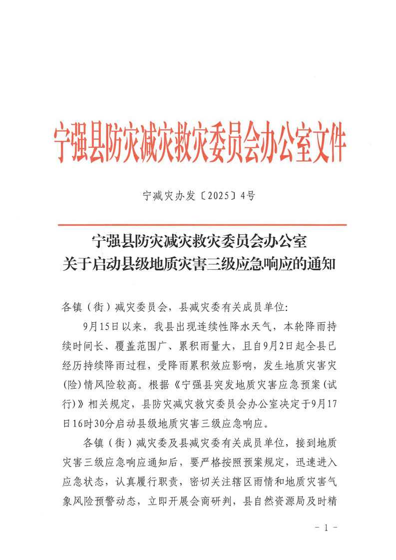 关于启动县级地质灾害三级应急响应的通知