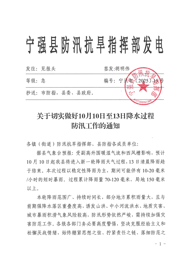 关于切实做好10月10日至13日降水过程防汛工作的通知