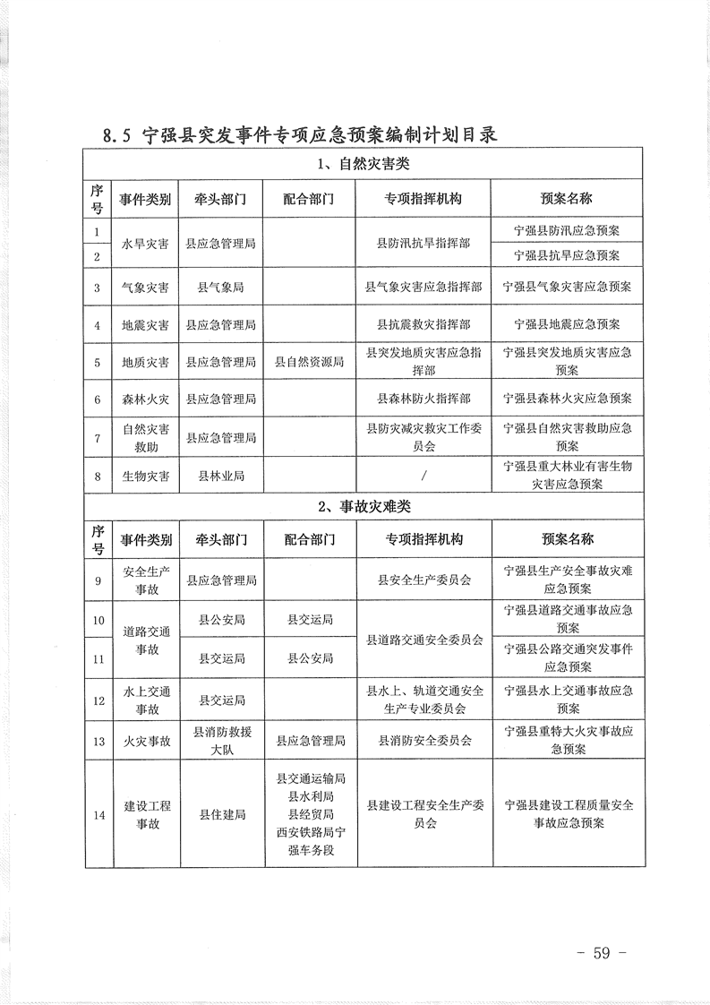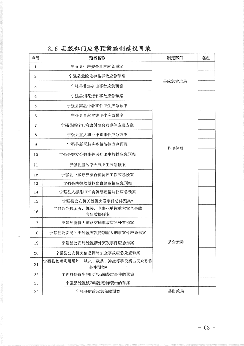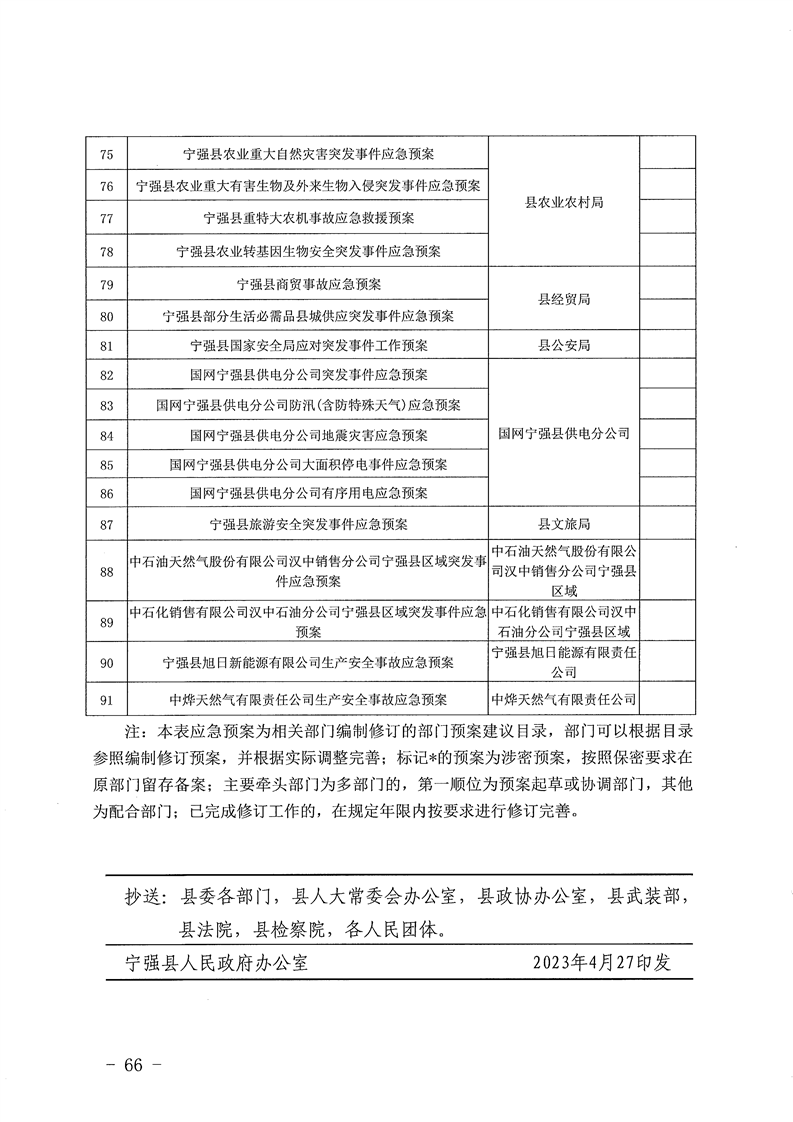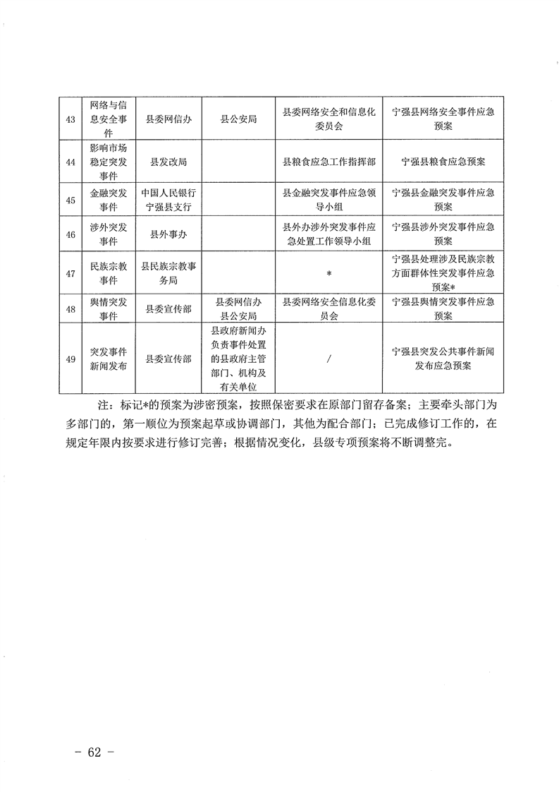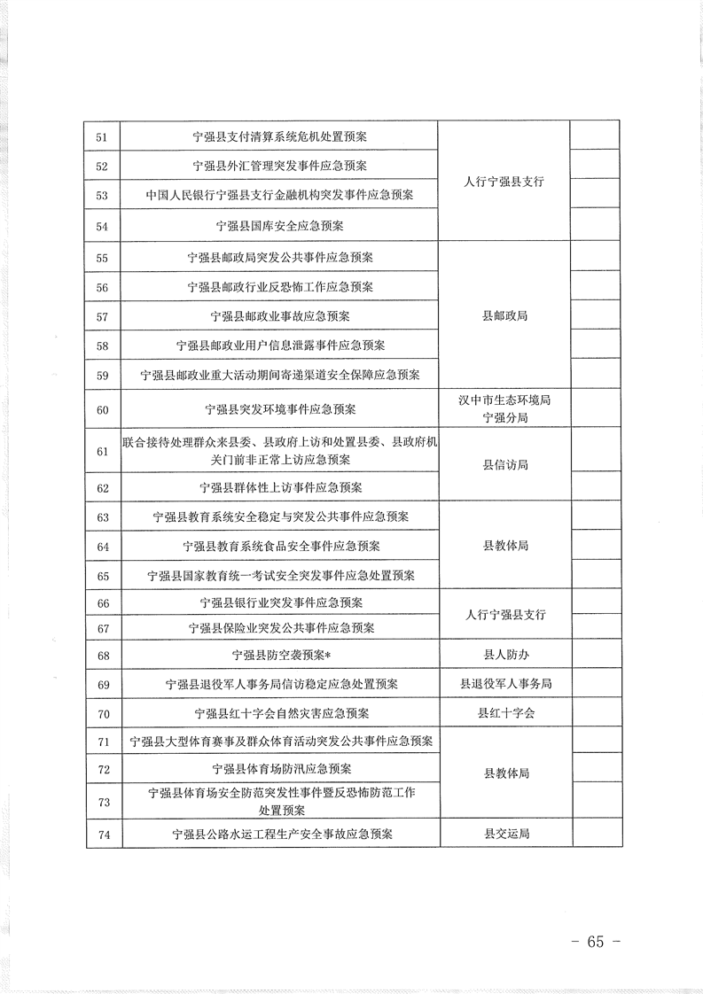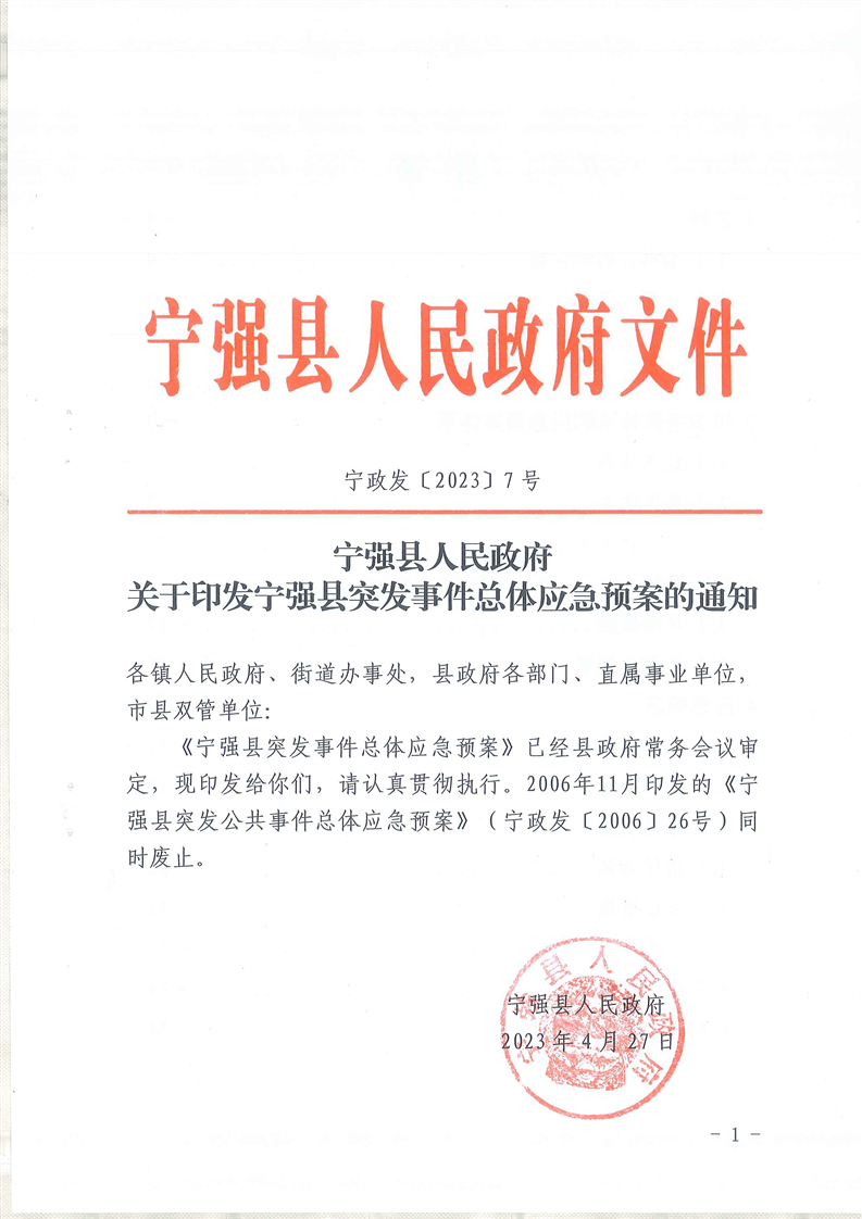 关于印发宁强县突发事件总体应急预案的通知